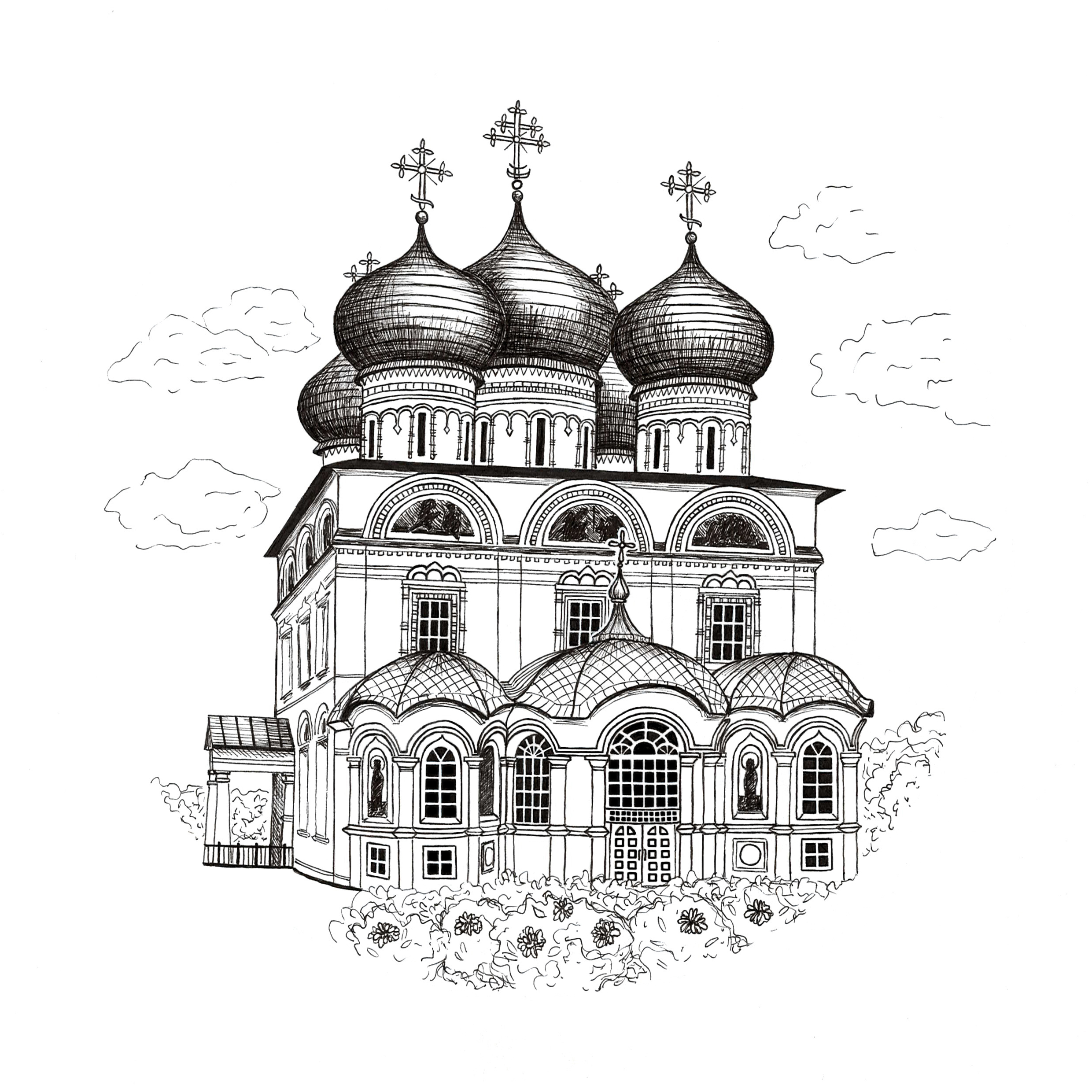 Эскиз для гравировки. Успенский собор города Кирова.