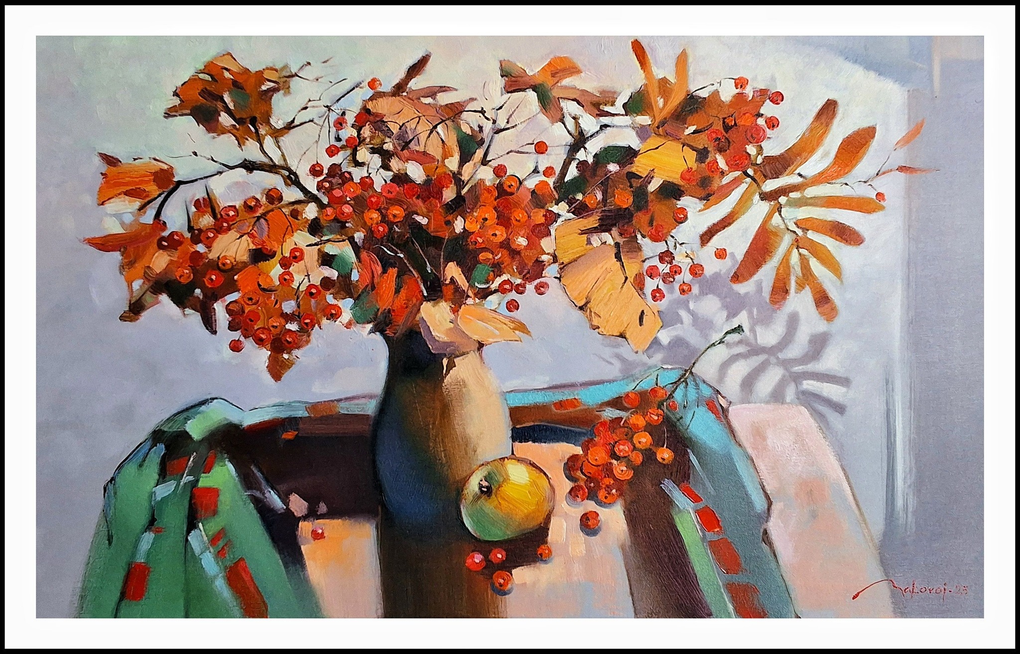 ,,Натюрморт с веточками рябины,,