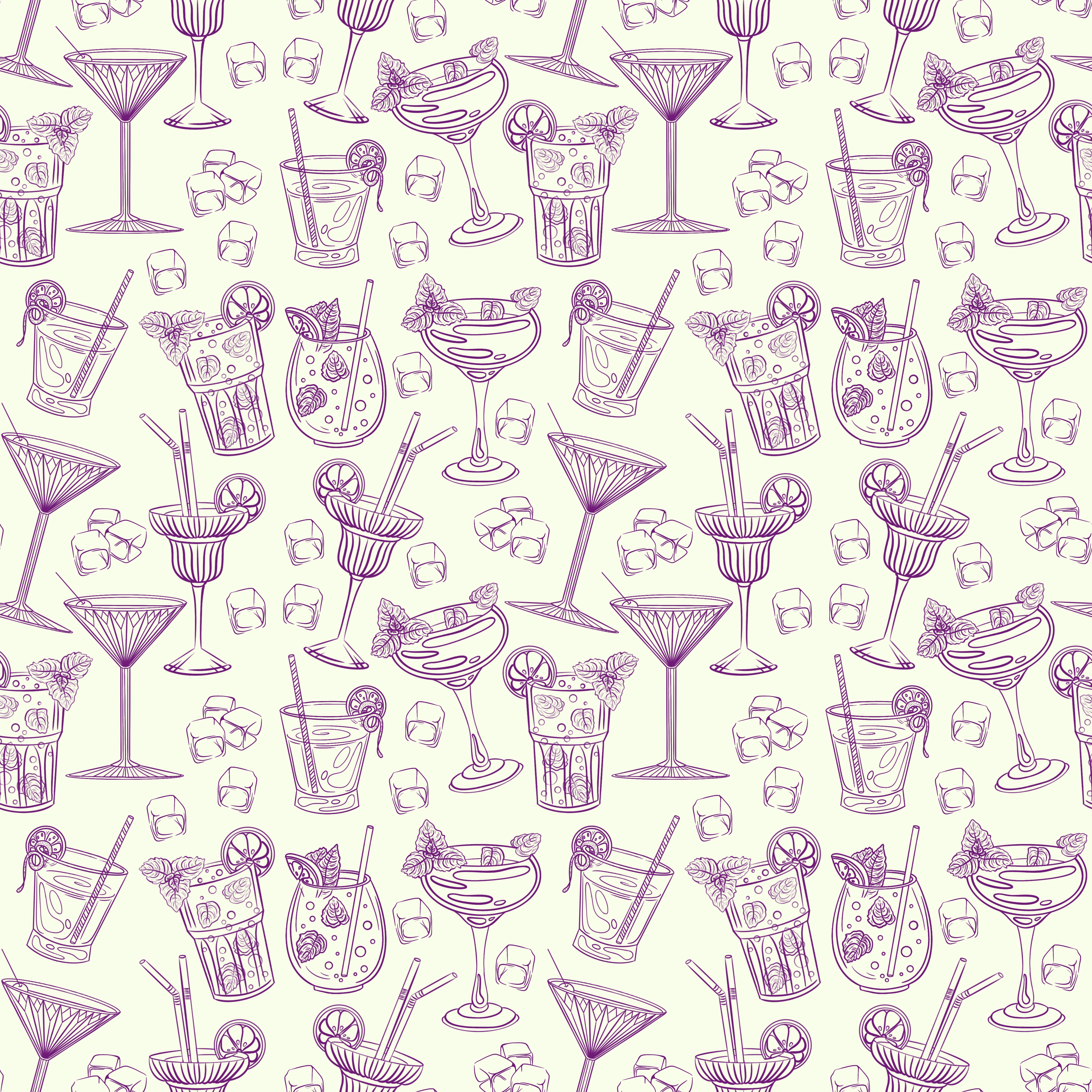 Бесшовный паттерн векторный, коктейли со льдом.
