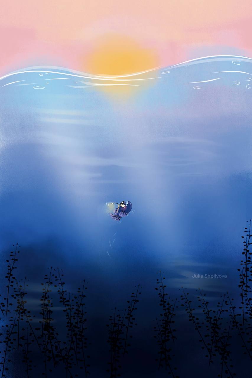 Здорово, как будто сравнивает солнце со своим огонечком:)