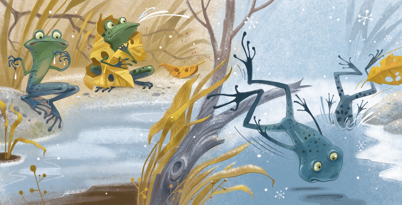 отлично!И погода и холодрыга,не знаю,но вот эти зачернённые ножки у прыгающей лягушки просто ...вау!