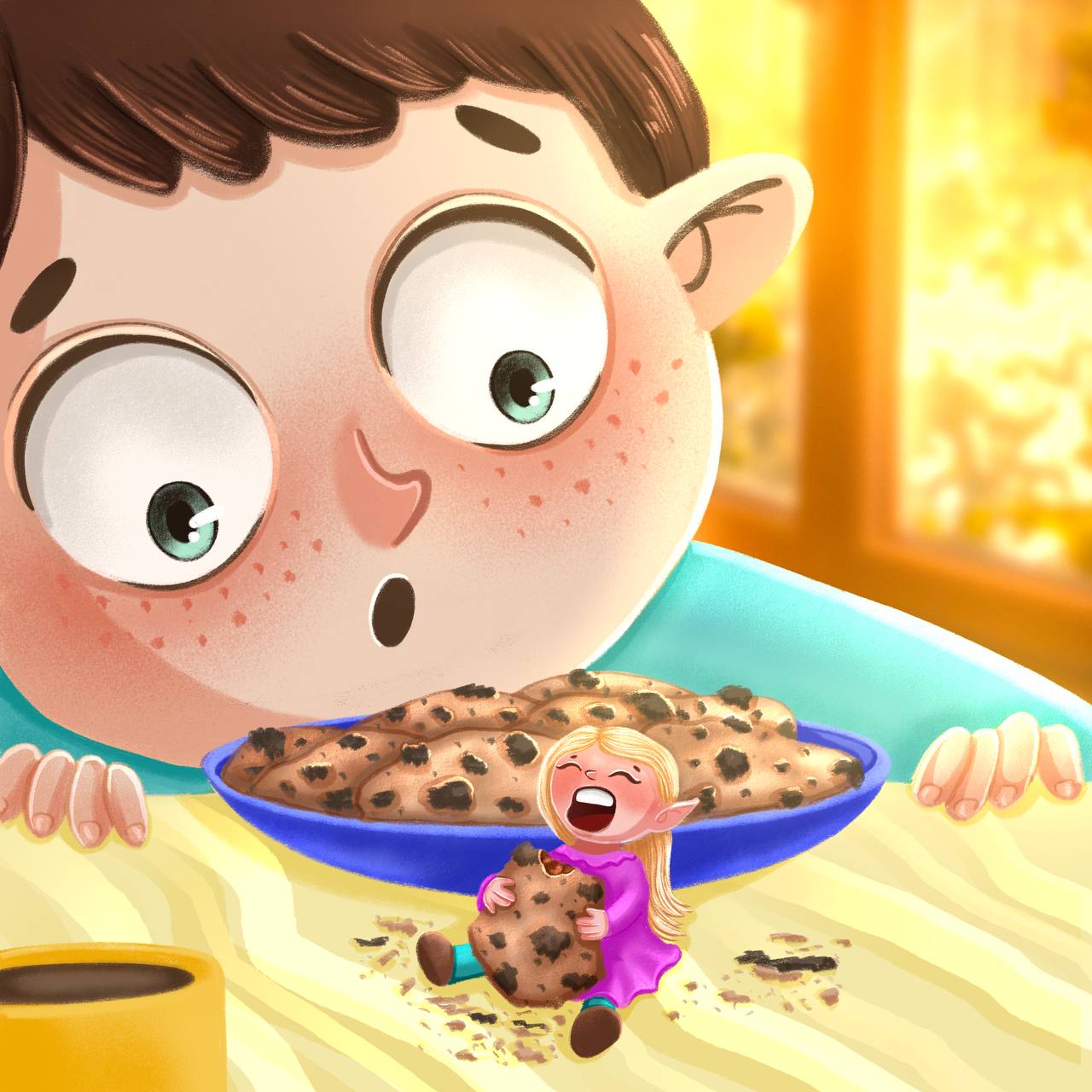 Мальчик захотел поесть печенье, но кто-то уже его ел. Рисовала эту иллюстрацию на марафоне Инны Гревцевой