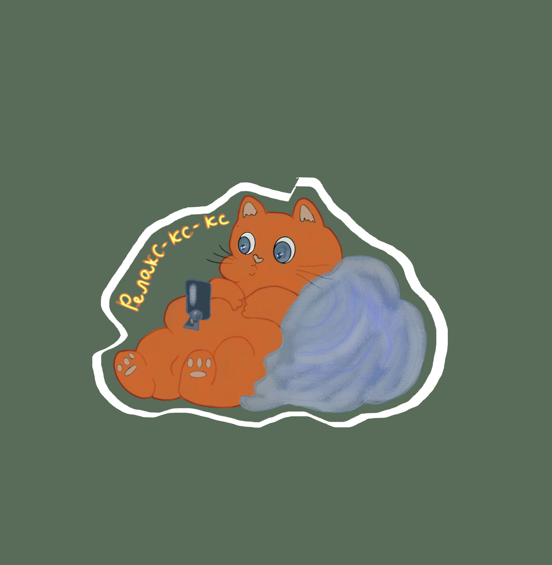 Был заказ нарисовать иллюстрацию на печать для футболок. Вот такой котик получился и прекрасно смотрелся на мужчкой футболке