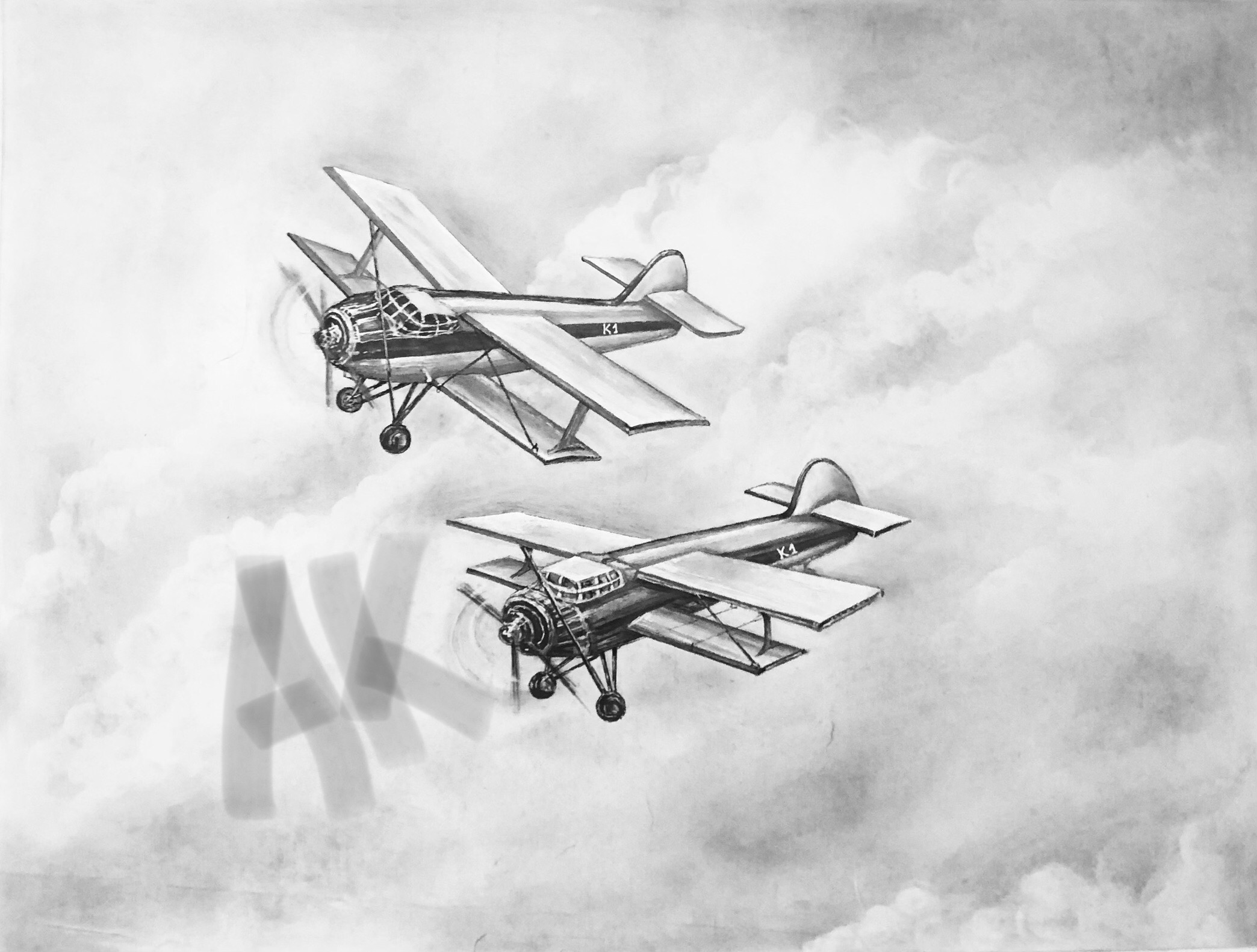 40х60. Рисунок выполнен простым карандашом, черной ручкой, линером.
