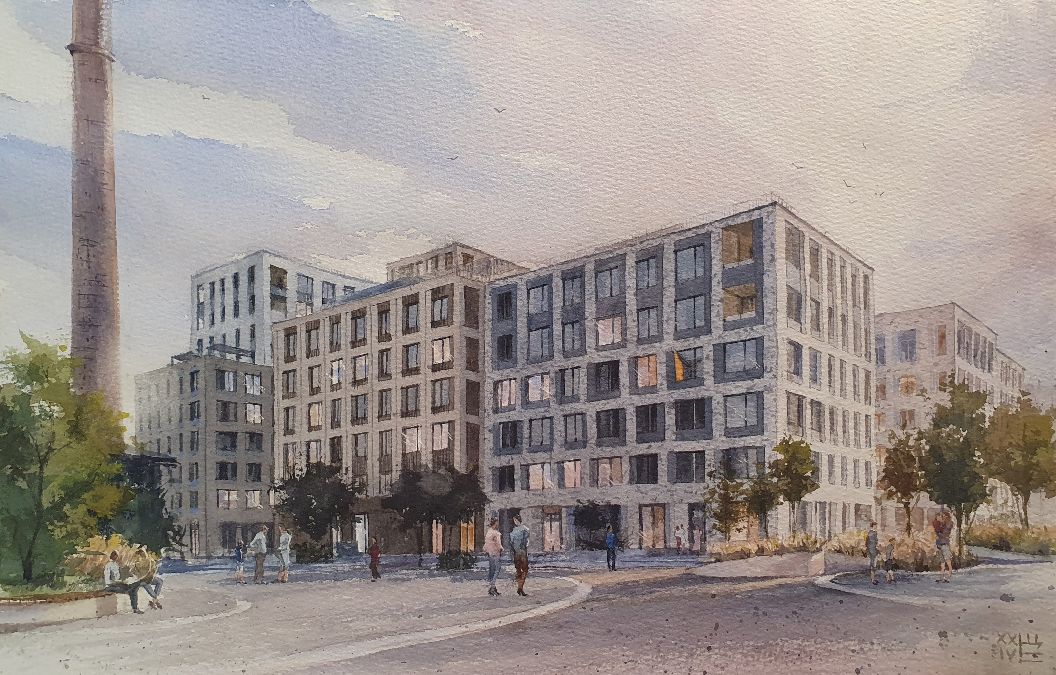 Современная архитектура в акварели