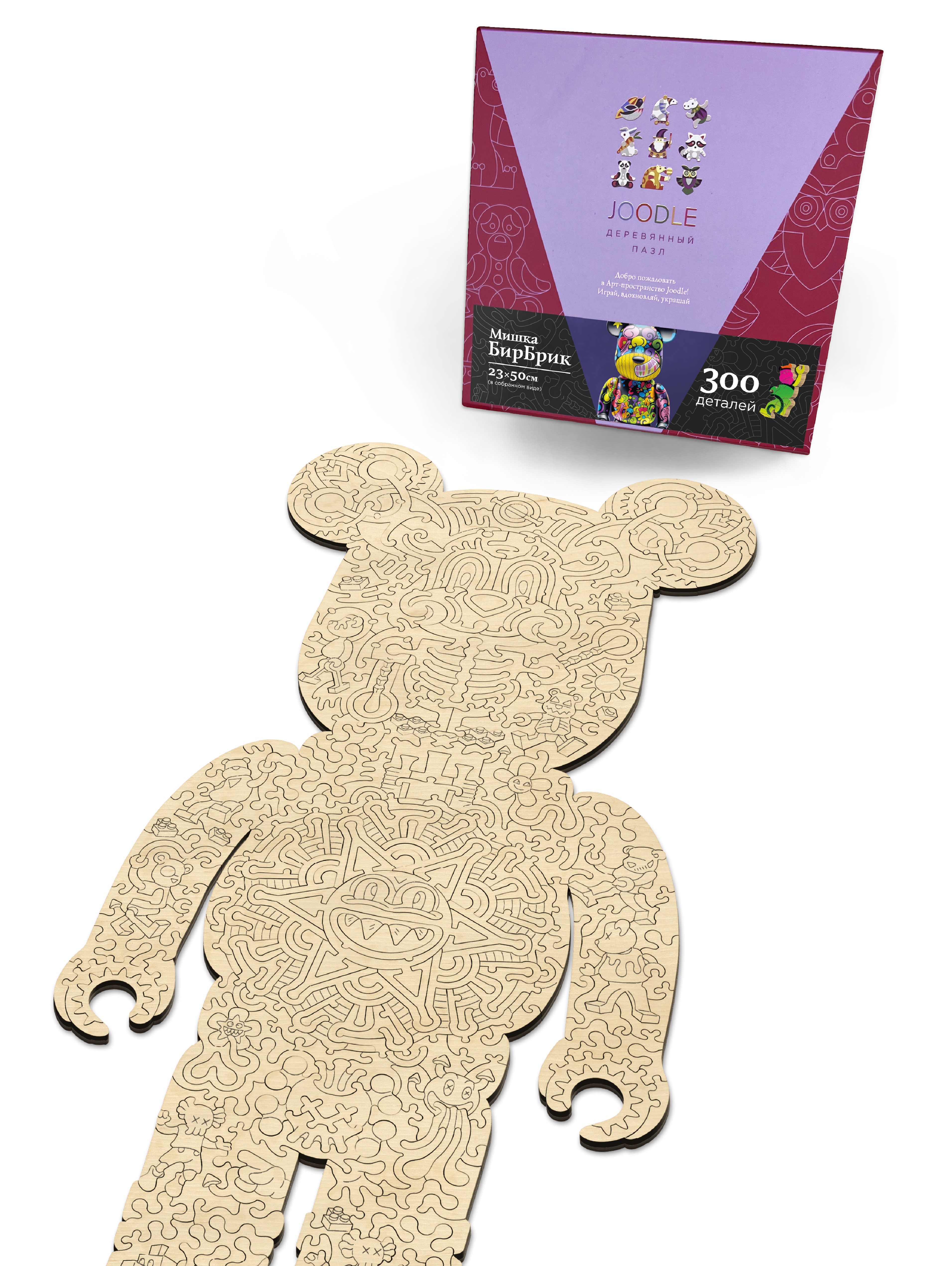 Деревянный пазл Мишка БирБрик 300 деталей для компании JOODLE Разработка художественного фигурного реза. Векторный файл для лазерной резки