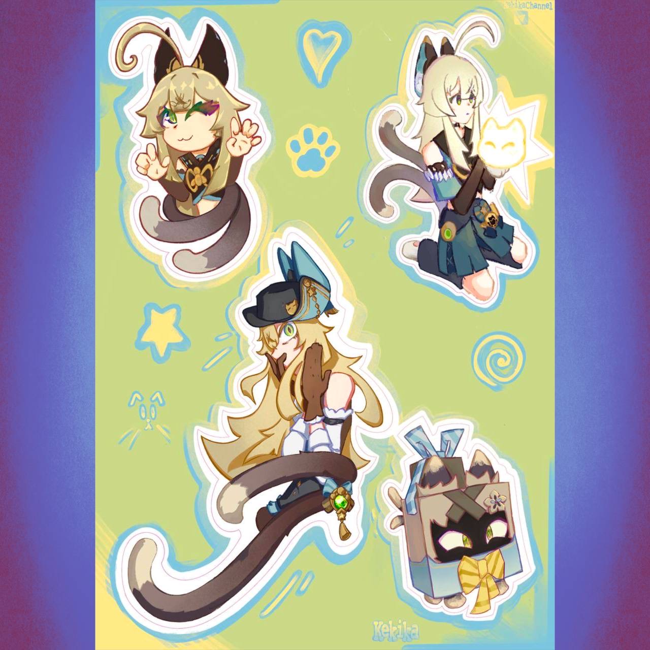 Набор наклеек для печатного мерча с персонажем Кирара из игры Genshin impact