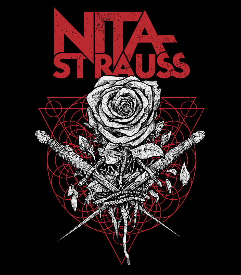 Арт для мерча известной рок-гитаристки Ниты Штраусс, для тура с Элисом Купером.