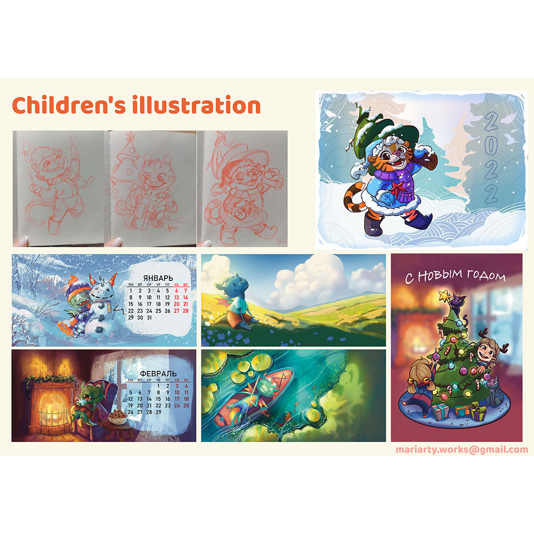 Иллюстрации на открытки, проиллюстрированные календари.