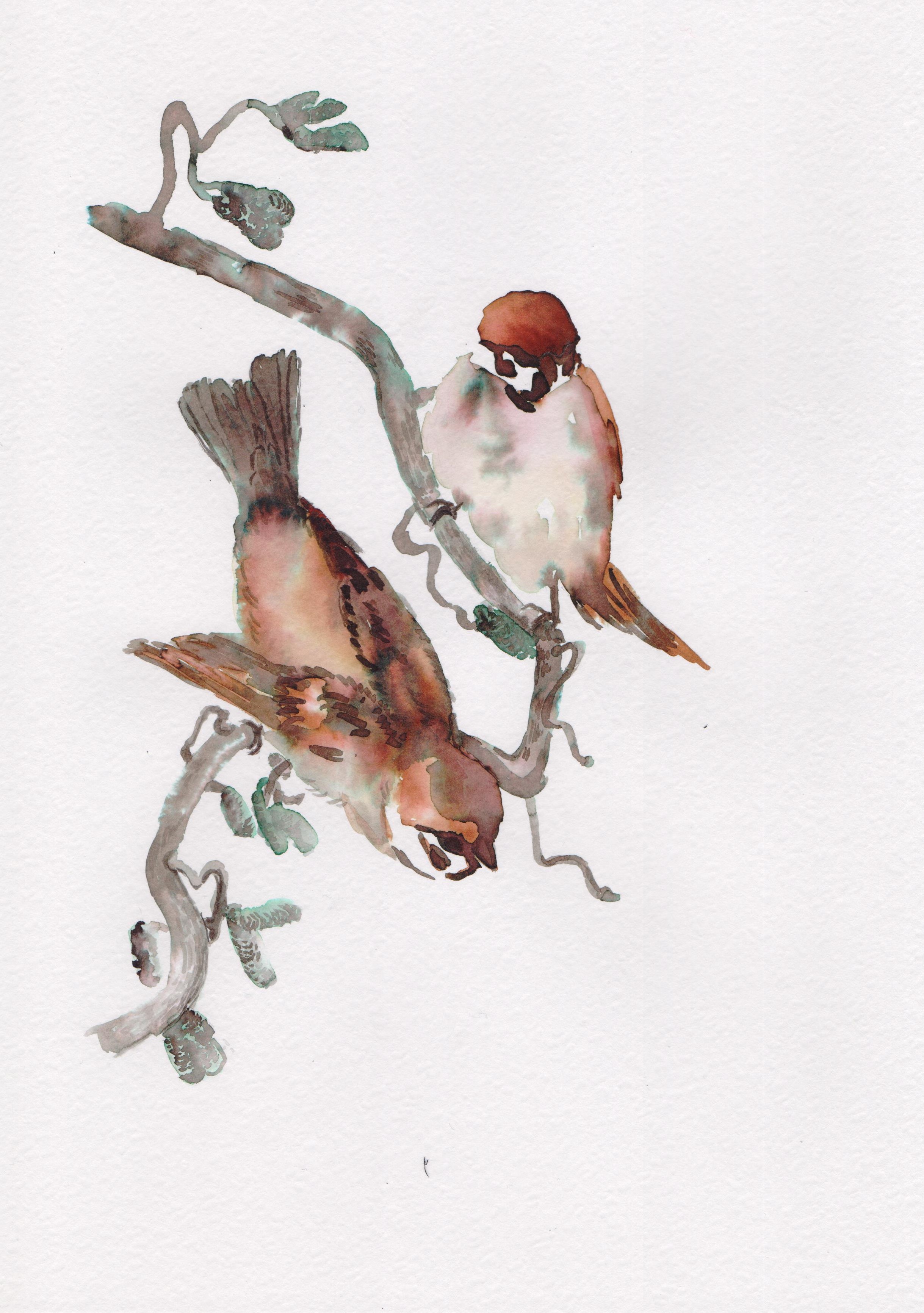 воробьи на ветке