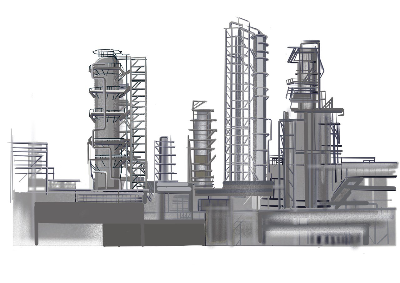 Стилизованное изображение завода по фотографии