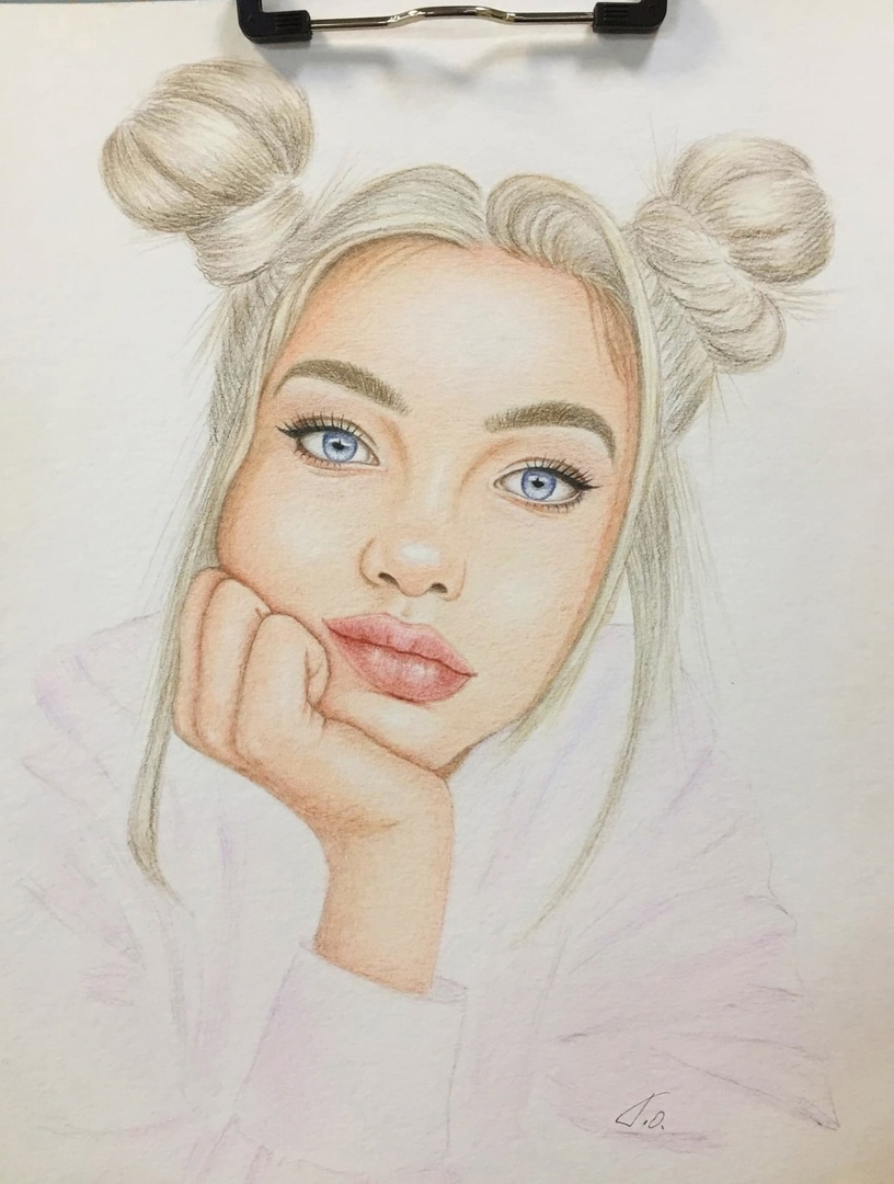 Портрет девушки цветными карандашами на фактурной бумаге