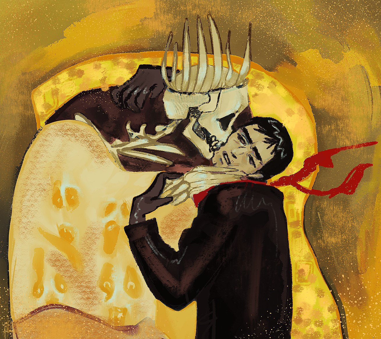 Фанарт для вселенной "Мор (Утопия)". Чума и бакалавр Даниил Данковский. Оммаж на работу Густава Климта "Поцелуй".