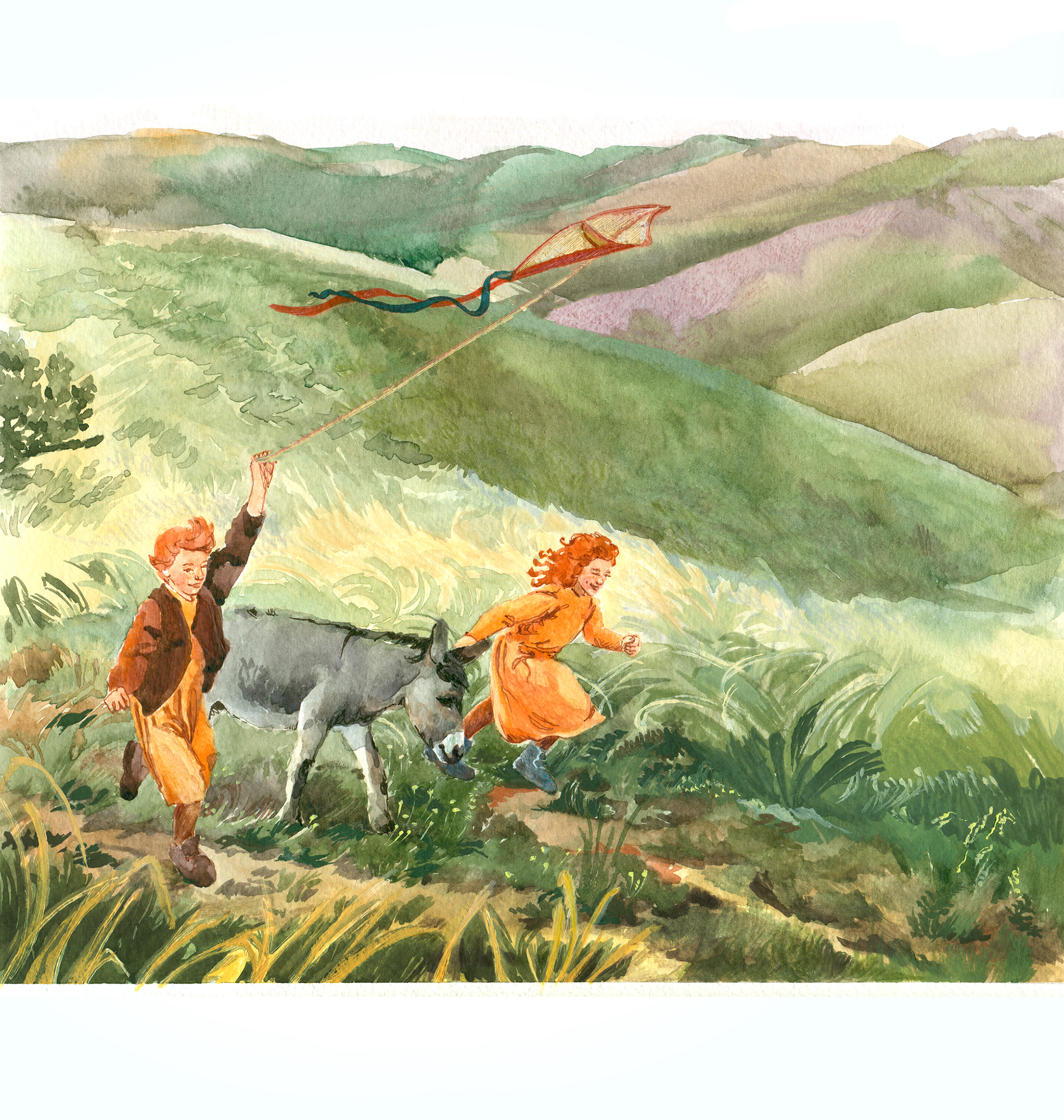 Акварельная полуполосная иллюстрация для повести Марии Гербер "Подарок для Ласси"