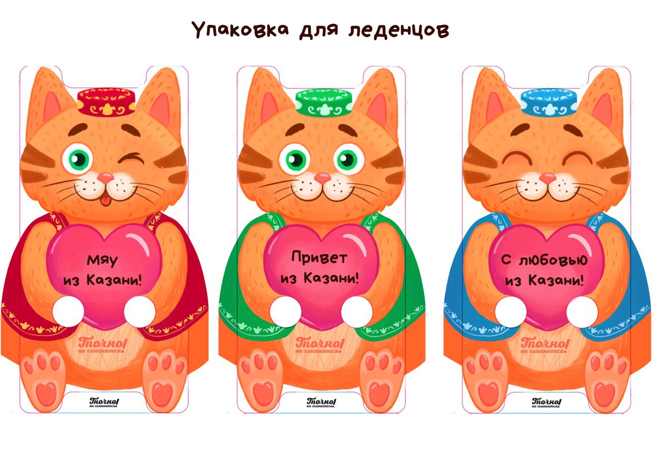 Упаковка для леденцов для сувенирной продукции Казани. Иллюстрация для бренда "Точно не слипнется"