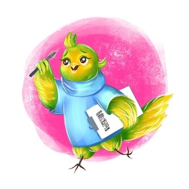Иллюстрация персонажа попугайчика-художника.