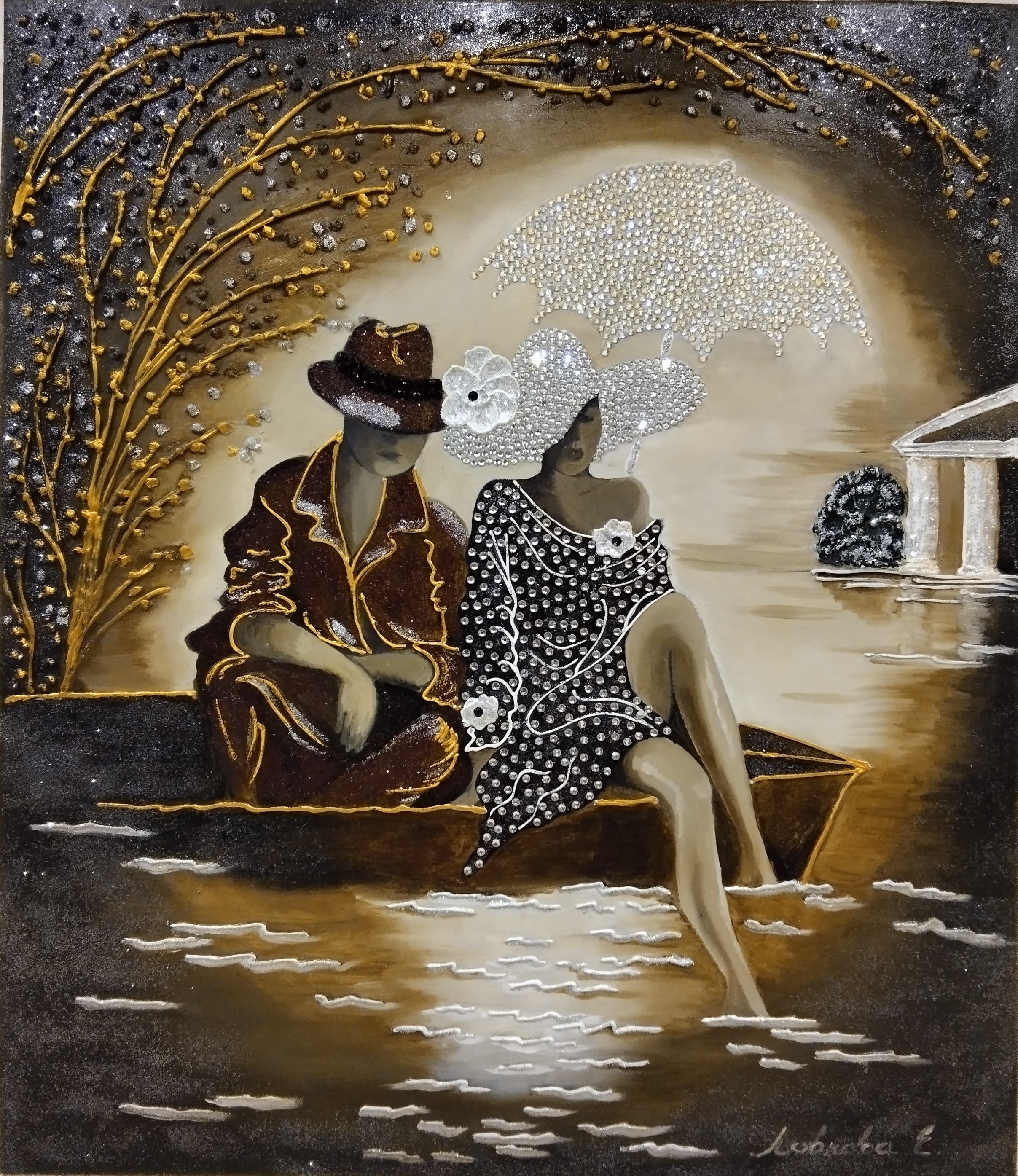 Love story "ТЕТ-А ТЕТ" масло, акрил, барельеф, стразы, глиттер. 2025г. (70/60 см.)