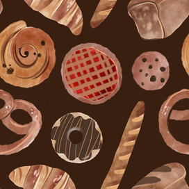 Бесшовный паттерн для создания полиграфической продукции, элементов дизайна, обоев, текстиля. Иллюстрация выполнена в акварельном стиле с отрисовкой элементов от руки на акварельной бумаге.