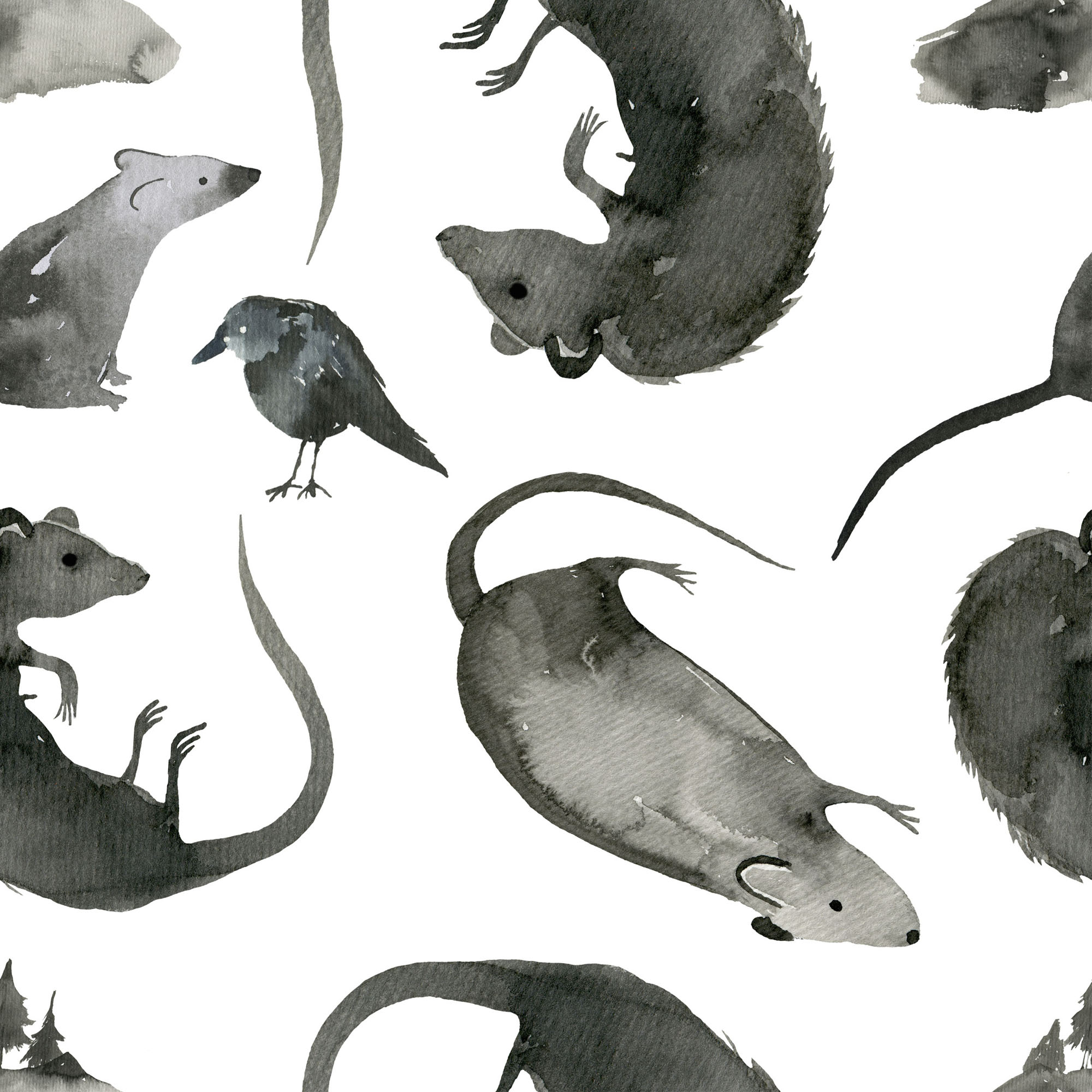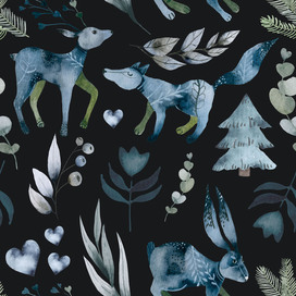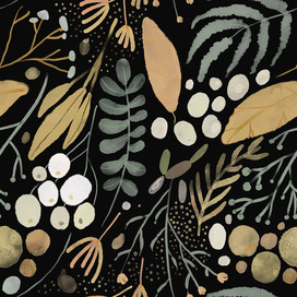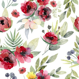 Бесшовный паттерн для создания полиграфической продукции, элементов дизайна, обоев, текстиля. Иллюстрация выполнена в акварельном стиле с отрисовкой элементов от руки на акварельной бумаге.