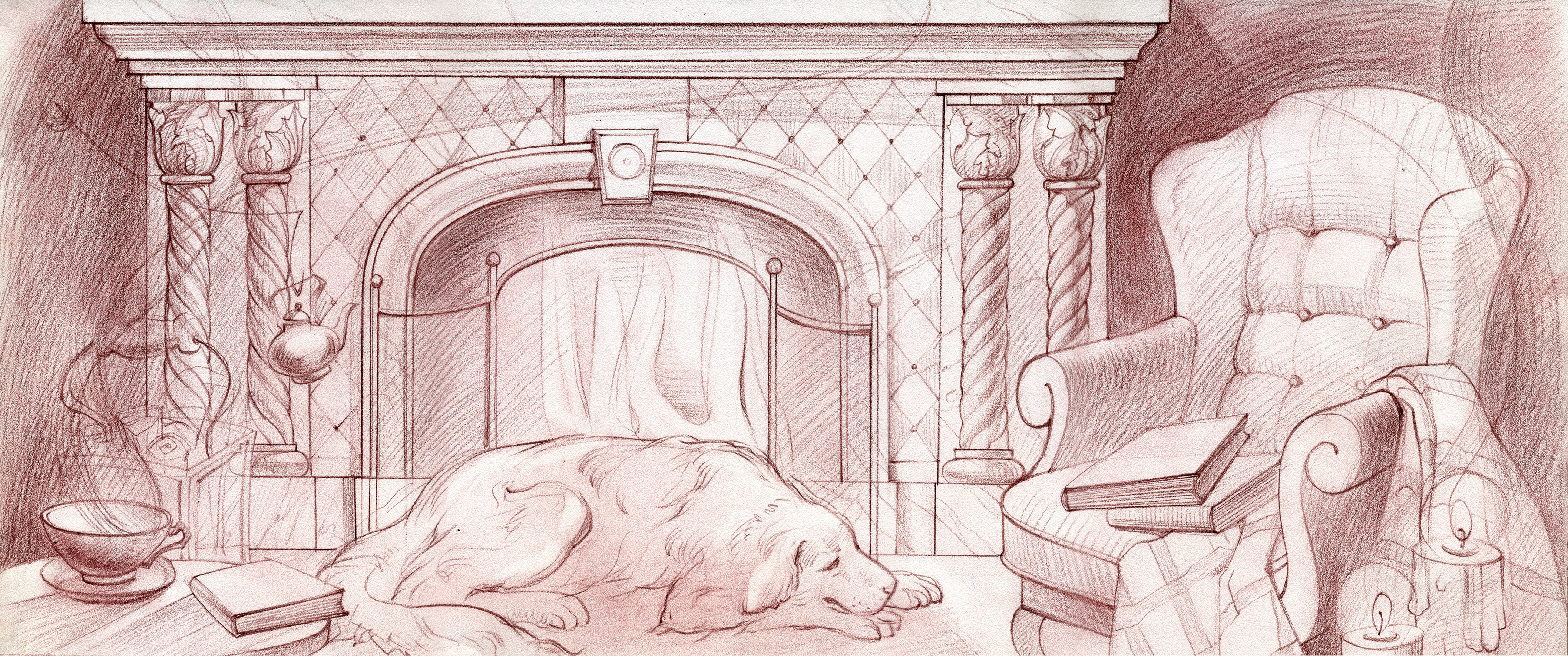 Но, когда разгорался в нем огонь, камин любил петь… саламандры, живущие в огне, бегали вверх и вниз по его витым колоннам, жмурился рядом пёс, булькал чайник, разнося аромат трав… А камин начинал рассказывать свою историю…
