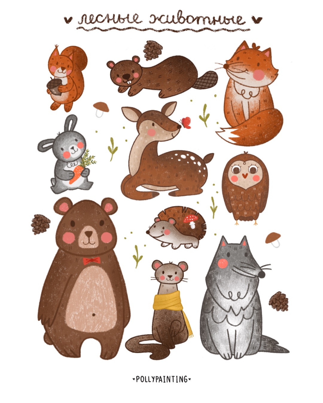Лесные животные в моей стилистике. Эта иллюстрация идеально подойдёт для детских книг, образовательных материалов или в качестве декоративного элемента.