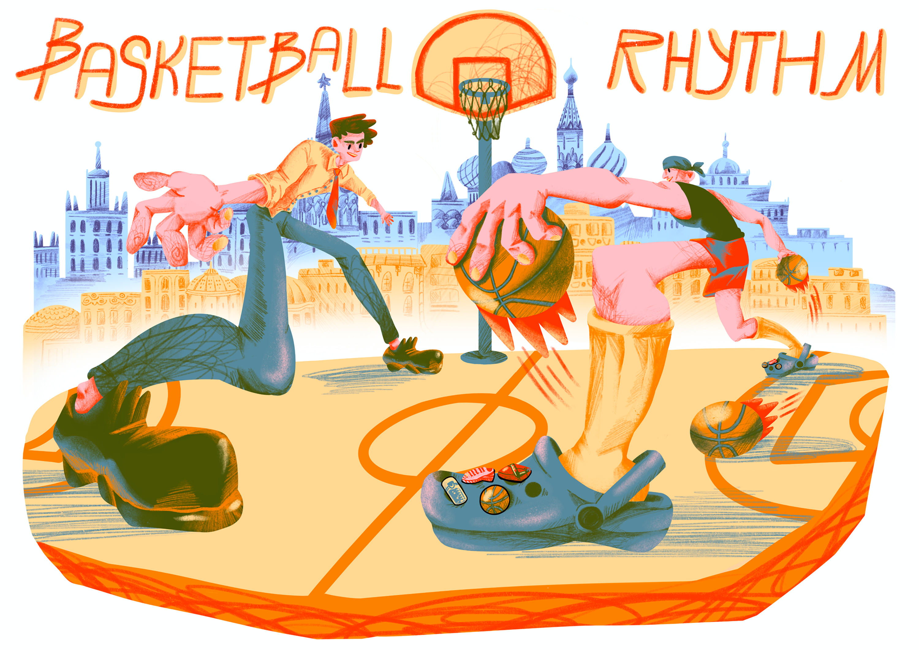 Данный проект был реализован в рамках баскетбольного конкурса. Его целью было создание иллюстраций и товаров, отражающих дух молодости, динамику движения, страсть к баскетболу и атмосферу города.