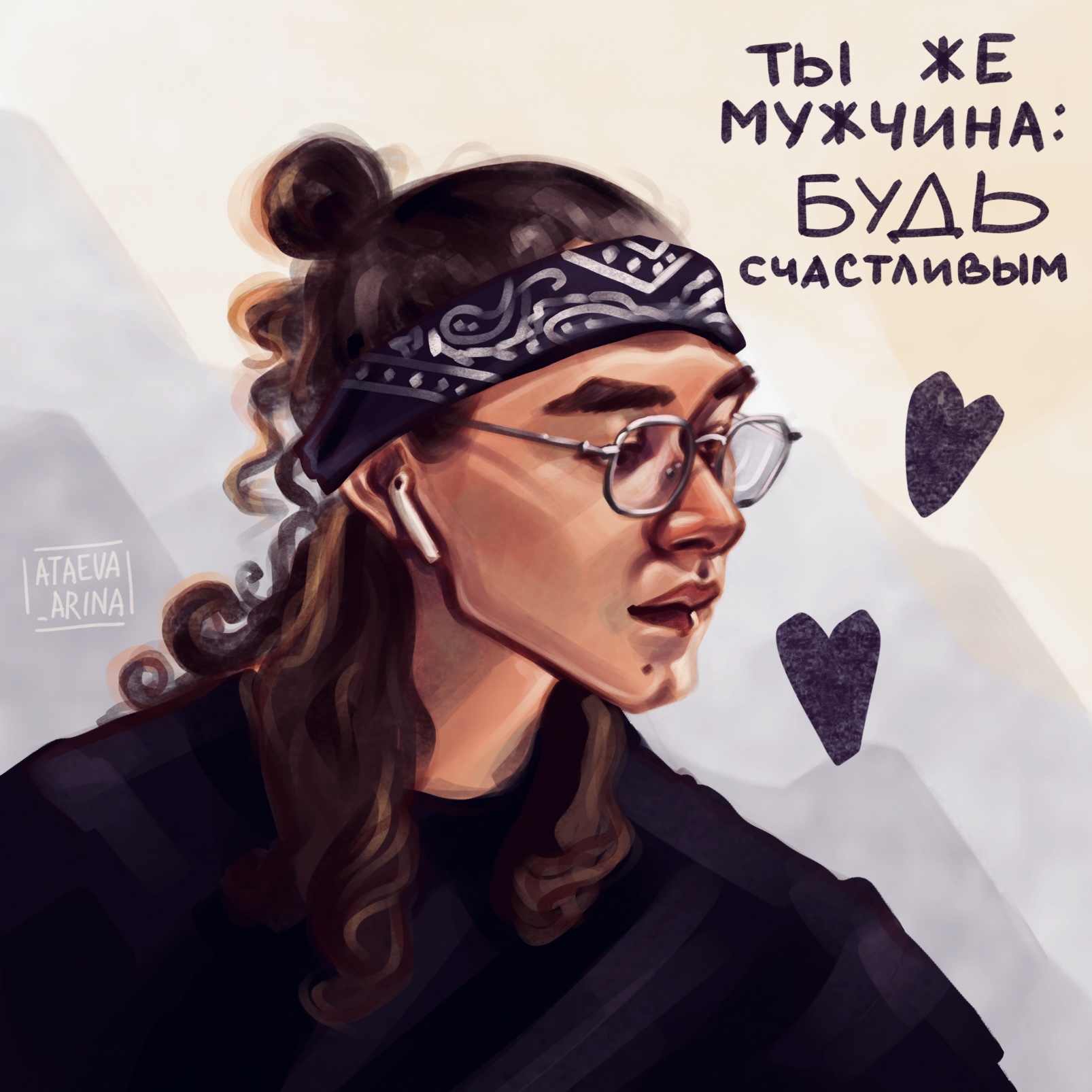 Портрет из серии проекта для Canon: в среднем в течение 40-50 мин рисовала случайных людей, оформляла «стикер», печатала иллюстрацию на принтере от canon. Формат печати - наклейка в виде фото полароида