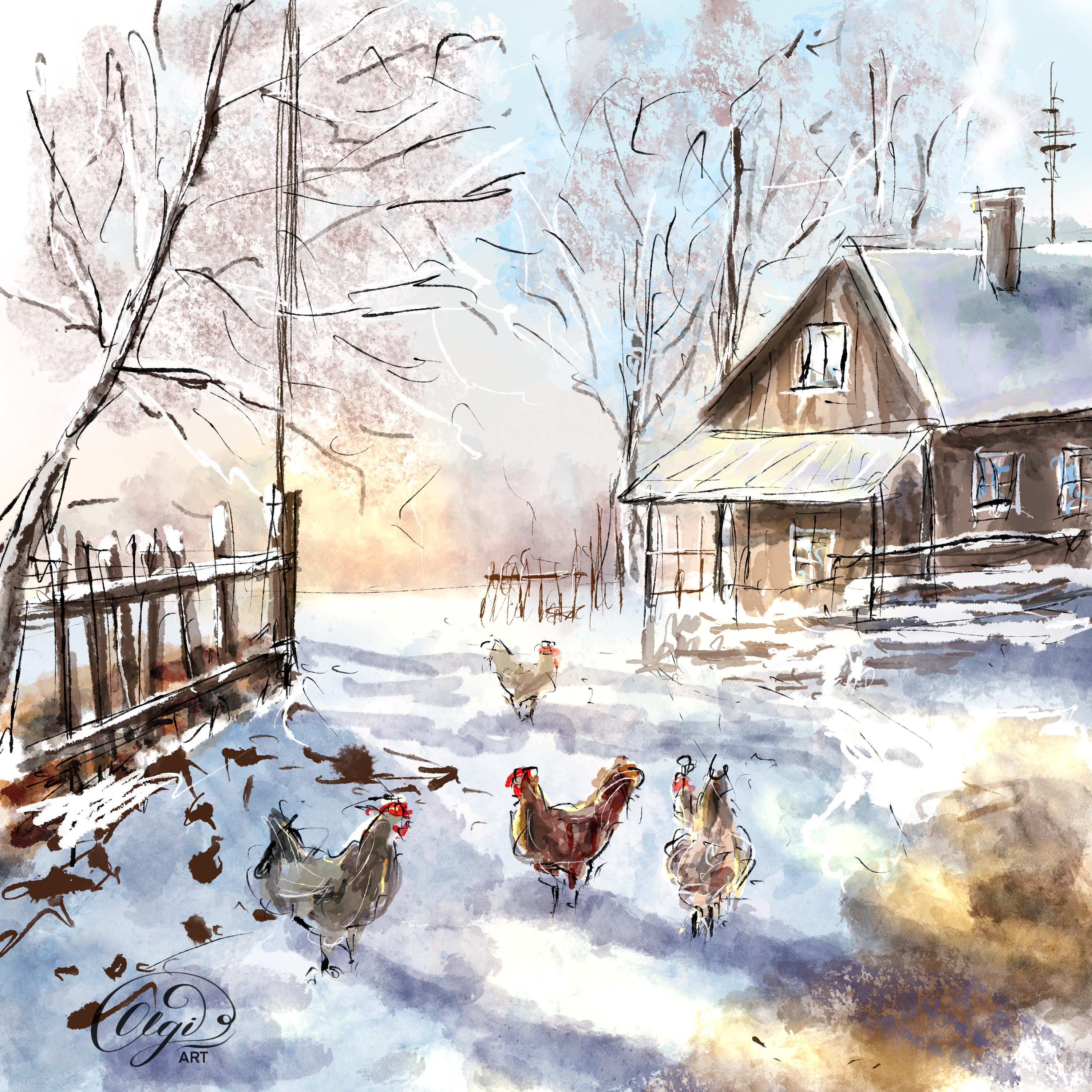 Зима деревня