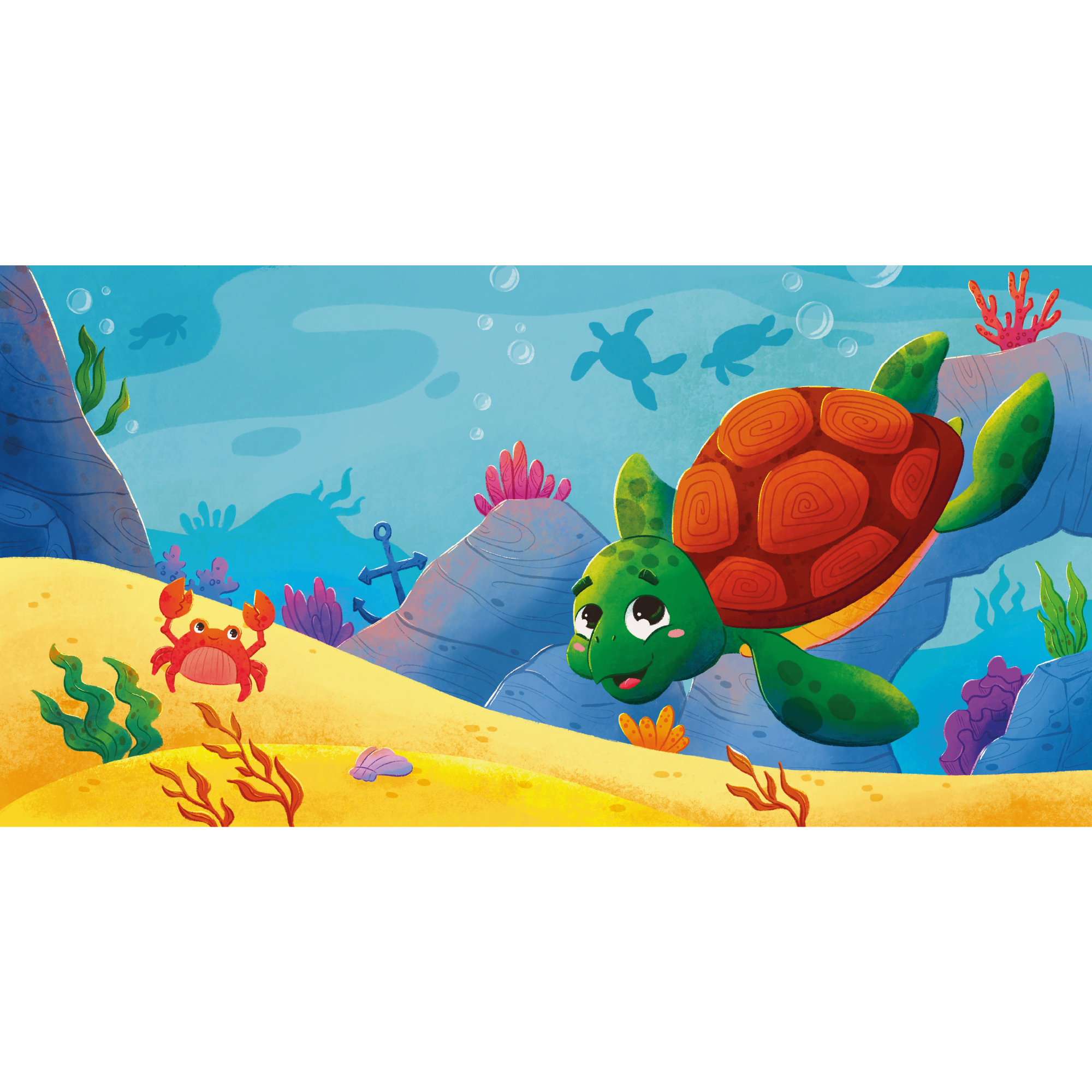 Разворотная иллюстрация для детской тактильной книги "Морские обитатели" издательства "АСТ "Малыш".