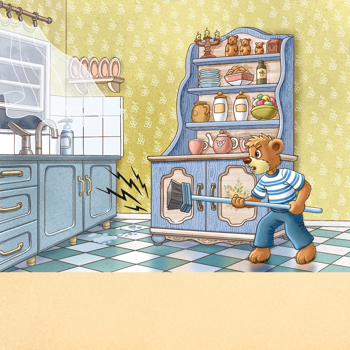 Медвежонок Пашка крадется по кухне