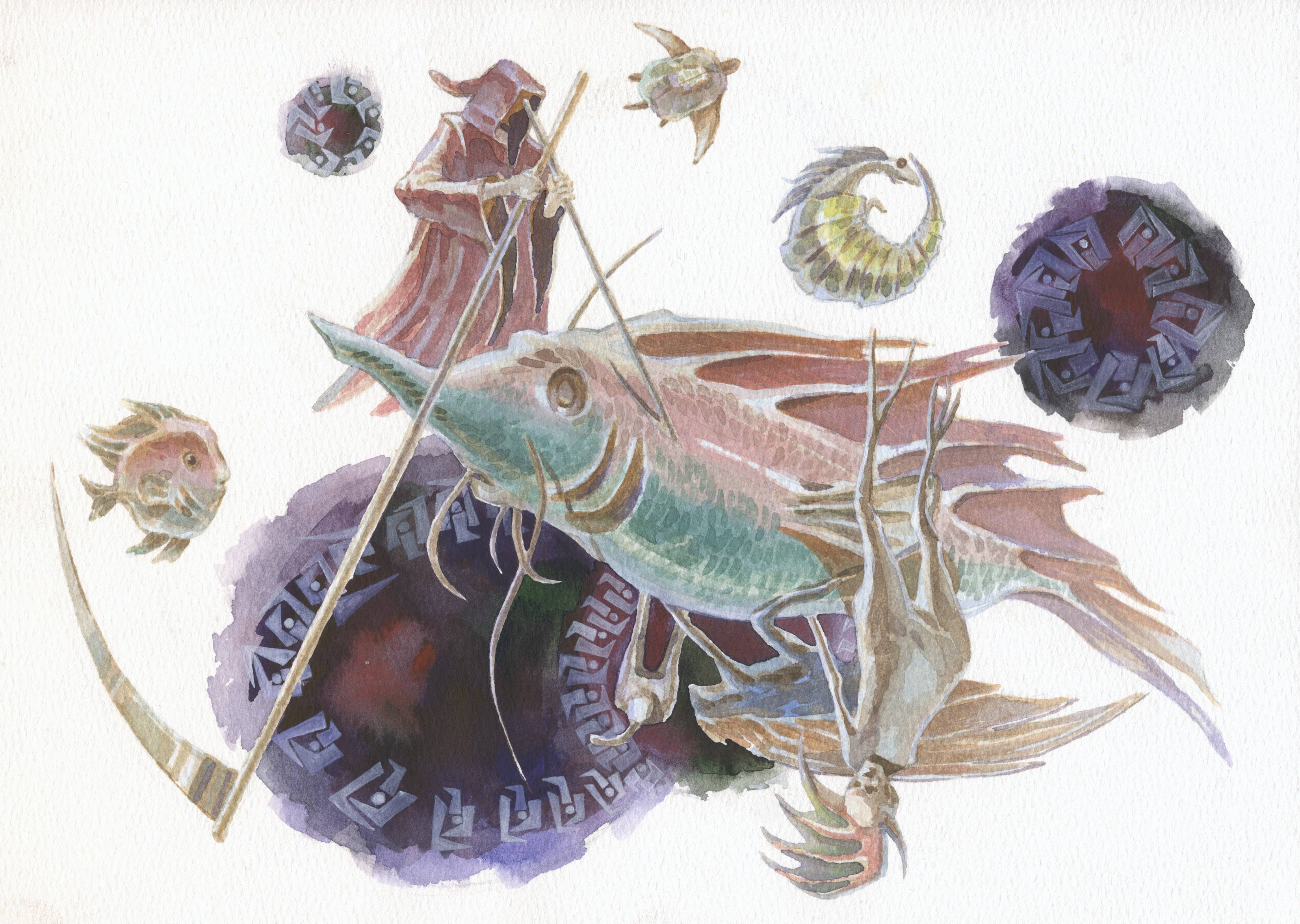 Акварелью без референсов, честно говоря, не помню, чтобы раньше рисовала. Можно и так(особенно убеждаюсь, глядя на моего сома) ). Пробую новые бумажки - и все больше люблю brauberg, но не 300, а 200 г, "сиреневый букет".