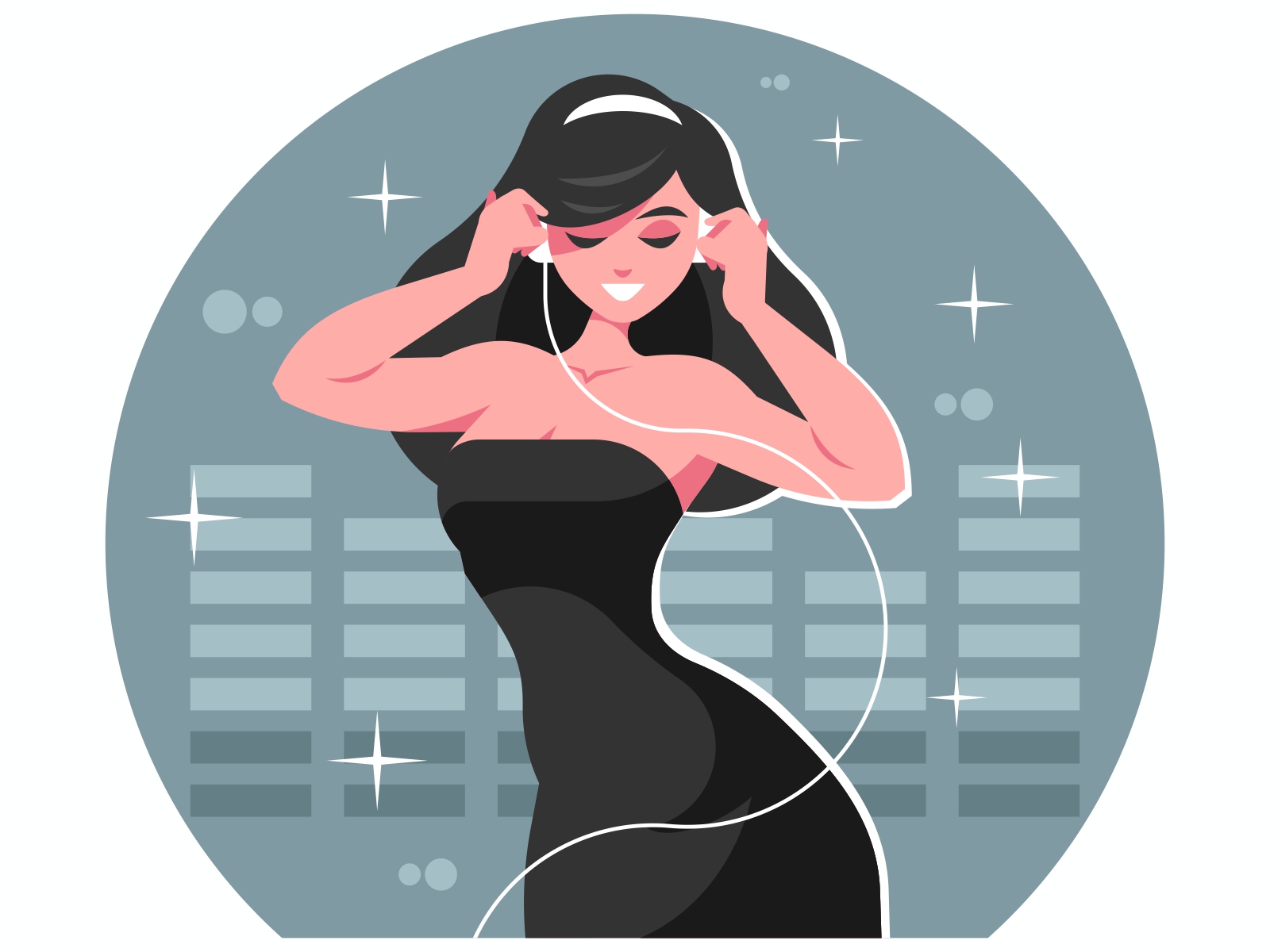 Девушка в наушниках слушает музыку
