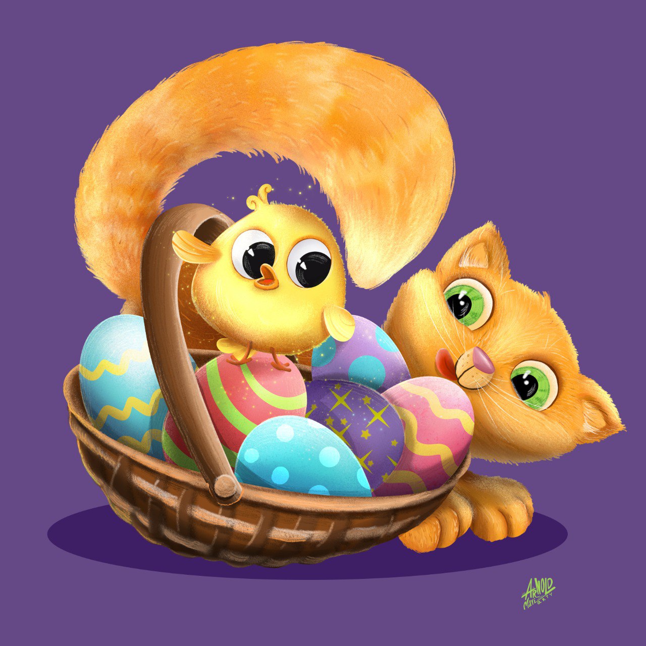 Кот и пасхальная корзинка