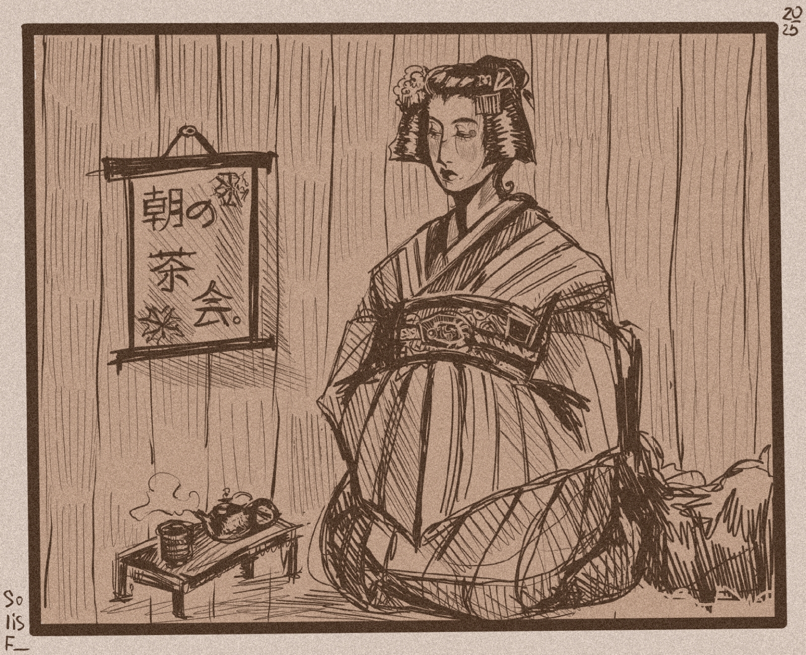 Зарисовка Майко из Киото на чайной церемонии