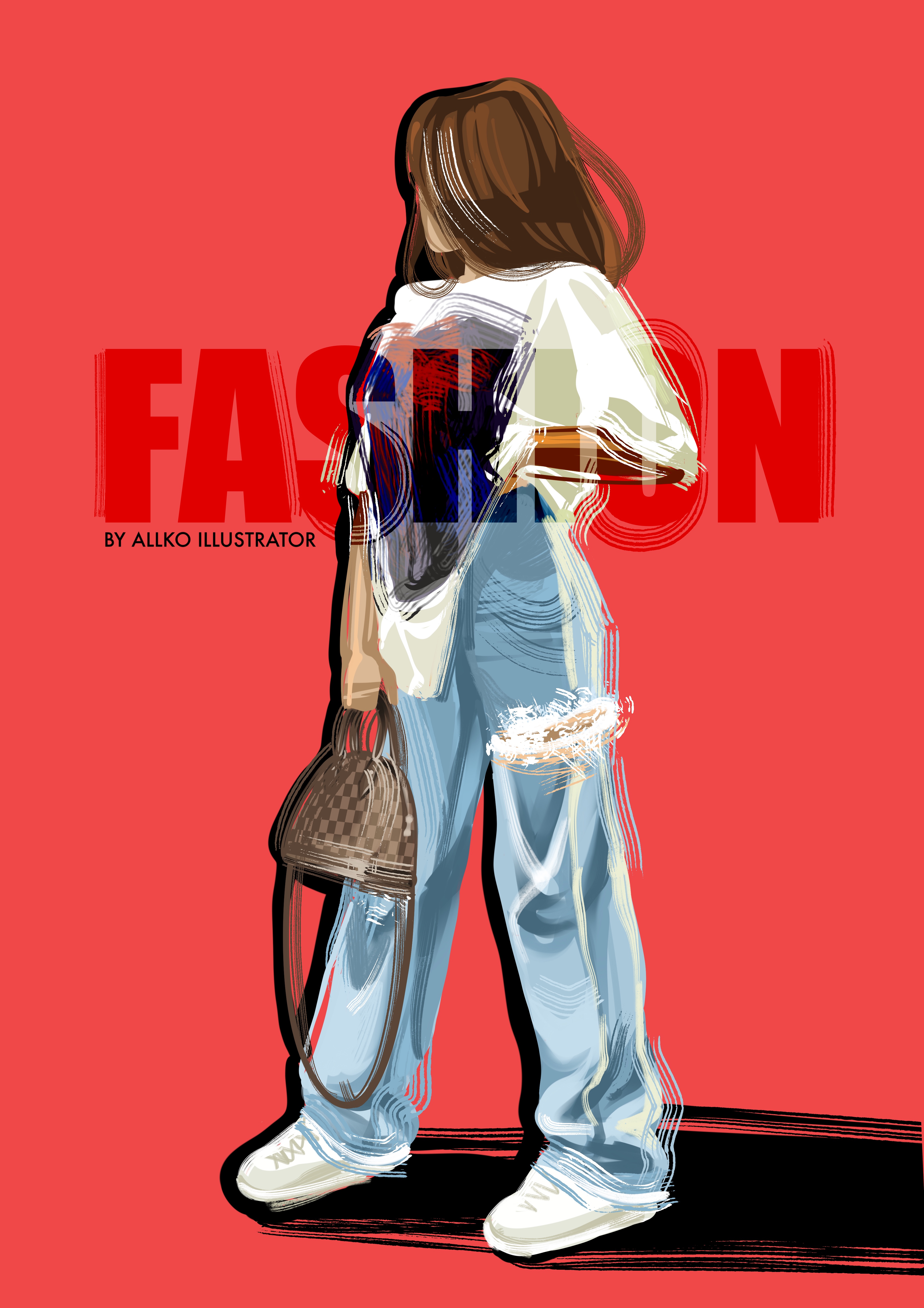 Городская мода в движении: иллюстрация о свободе самовыражения и уверенности. Легкость линий, динамика мазков и акцент на фактуре джинсов создают ощущение живого момента. Здесь нет лица — только стиль, настроение и энергия мегаполиса.