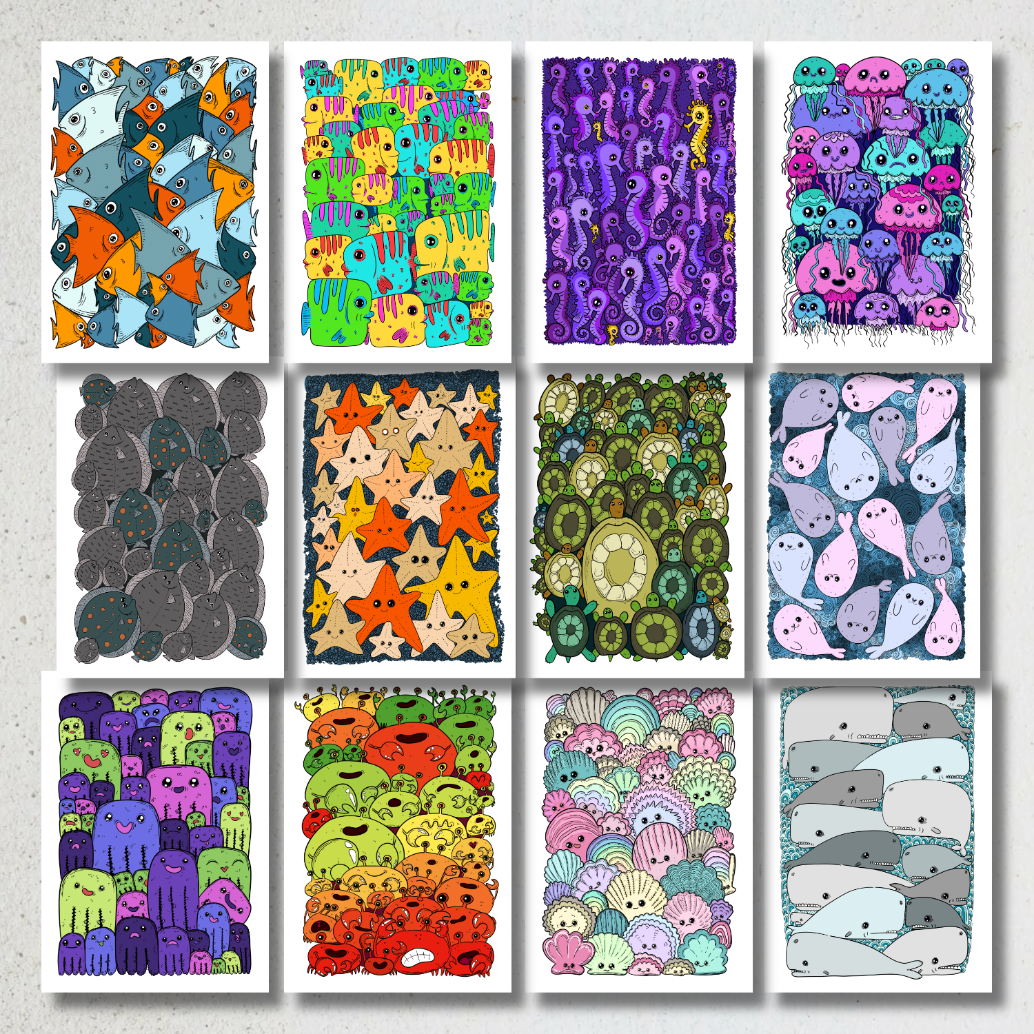 Образцы для серии раскрасок "Морские обитатели"