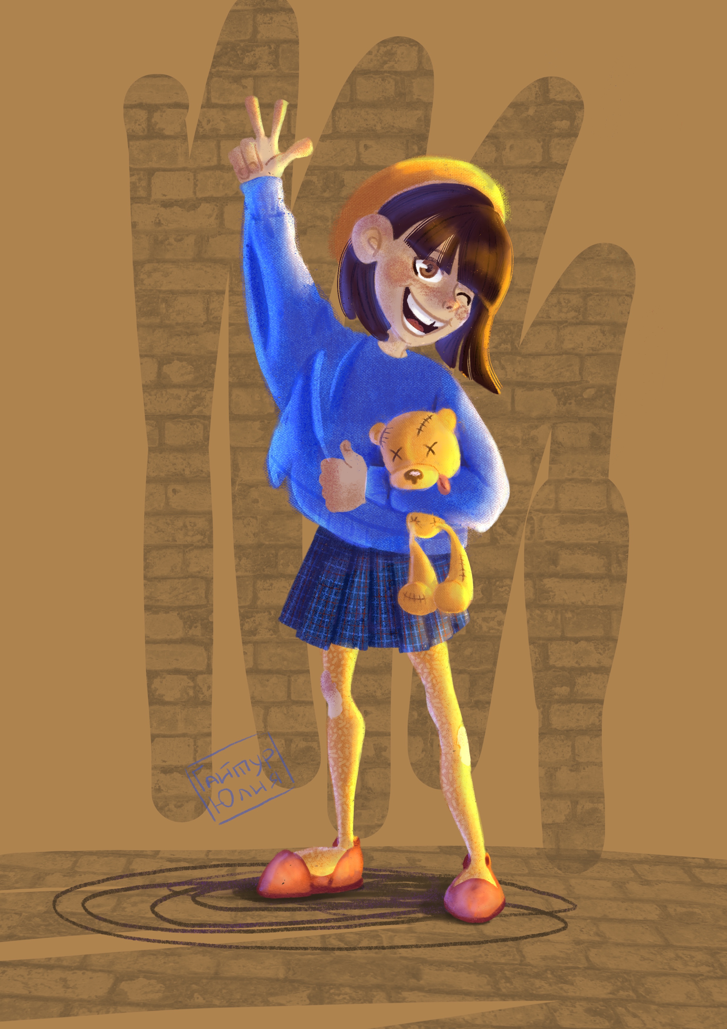Девочка с медведем нарисована в другой стилистике. Более озорная и позитивная. Так же может стать бренд персонажем