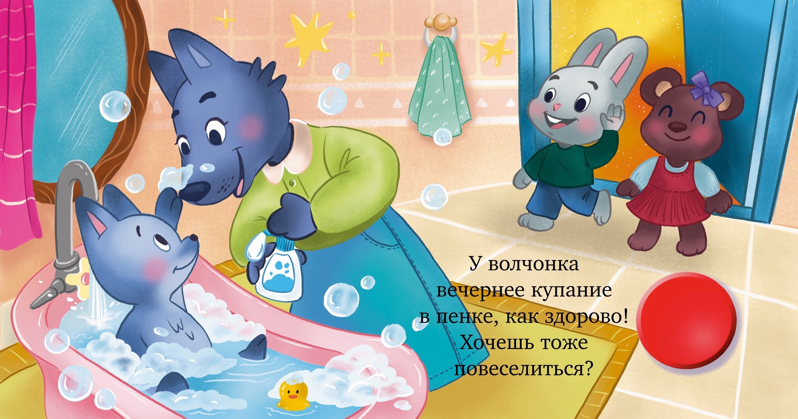 Иллюстрация для книжки-картонки с кнопкой. Сюжет выполнен по ТЗ от заказчика