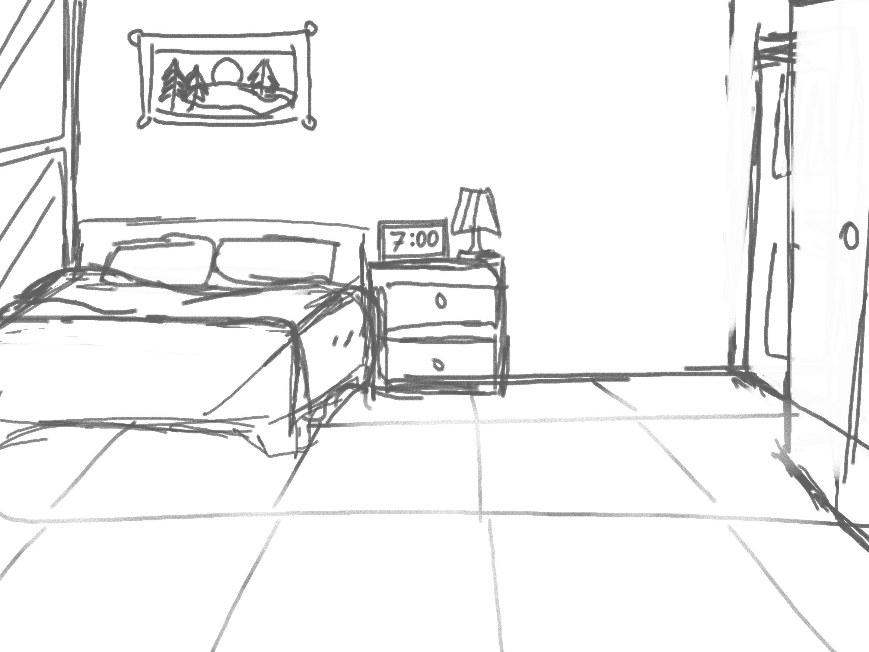 Быстрая зарисовка помещения. Возможные любые подобные быстрые варианты или более детальная проработка, все по желанию