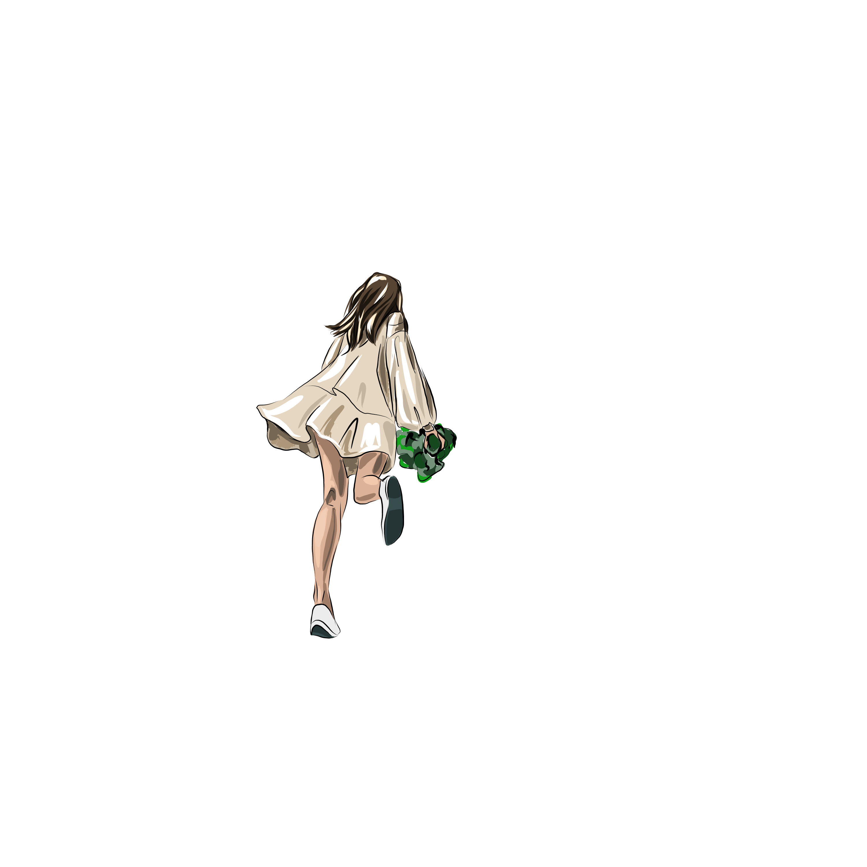 Девушка бежит с цветами