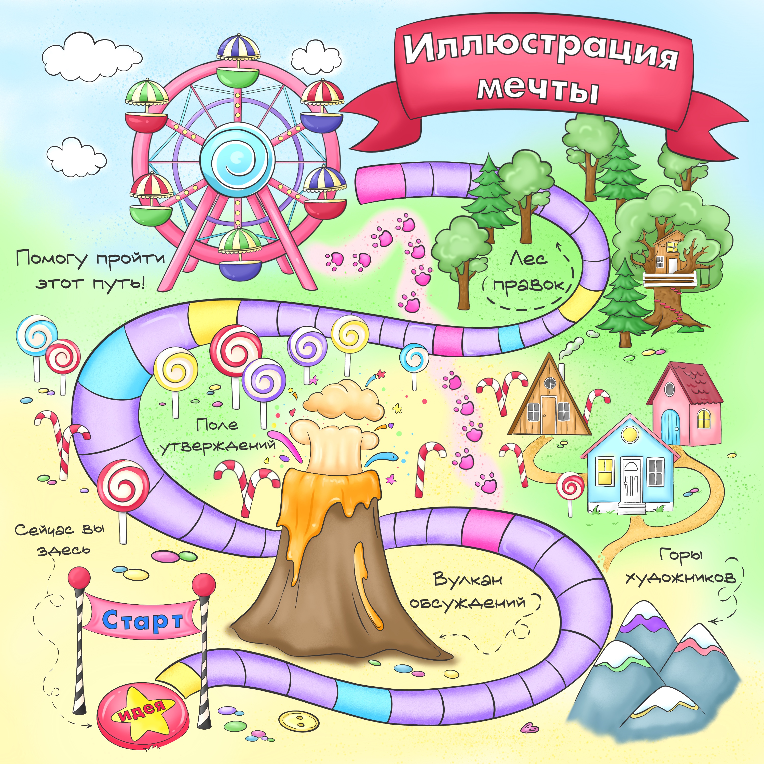 Карта была создана в качестве игровой иллюстрации к алгоритму работы на заказ. Для привлечения внимания и демонстрации навыков!