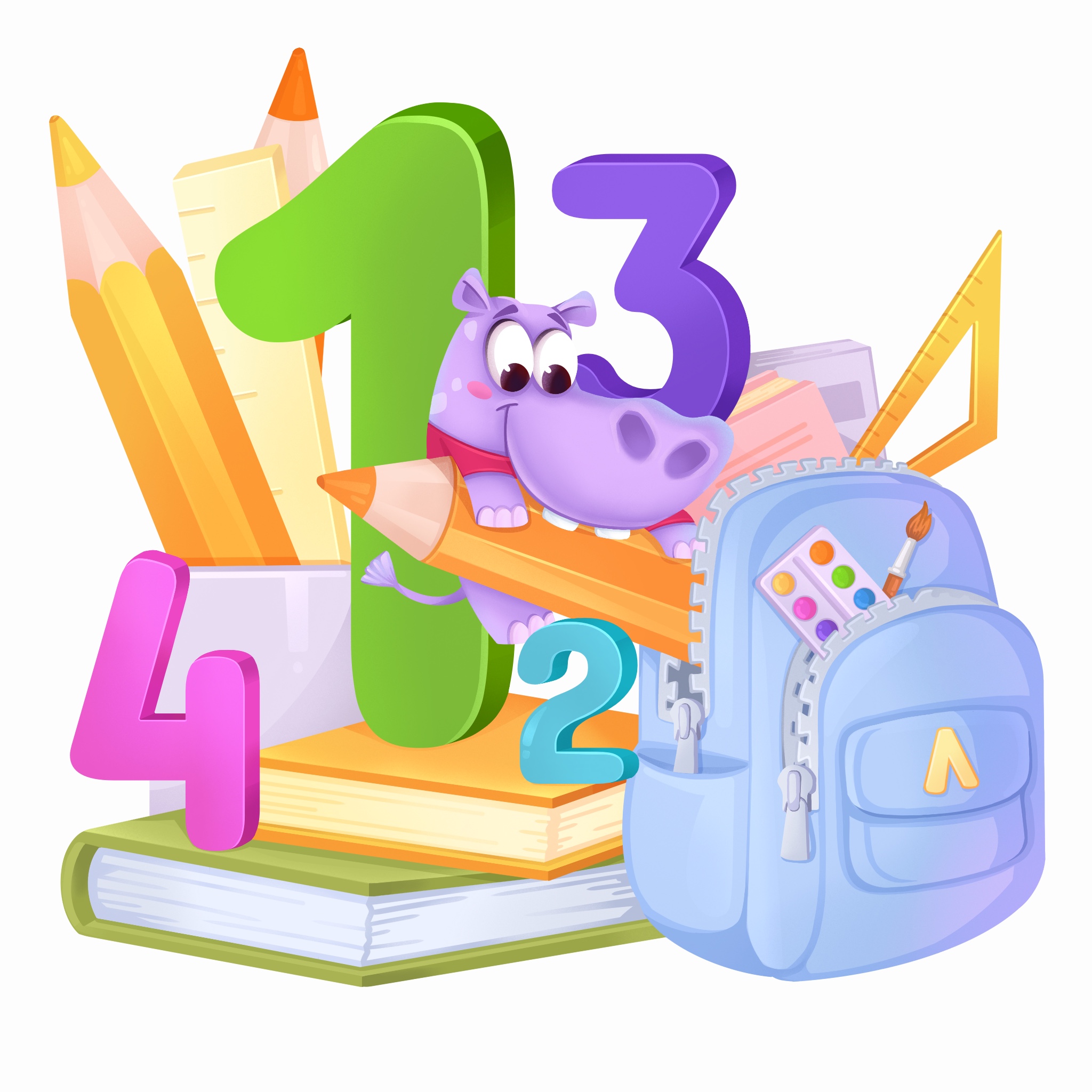 Бренд-персонаж Логопотам. Иллюстрация подготовка к школе.