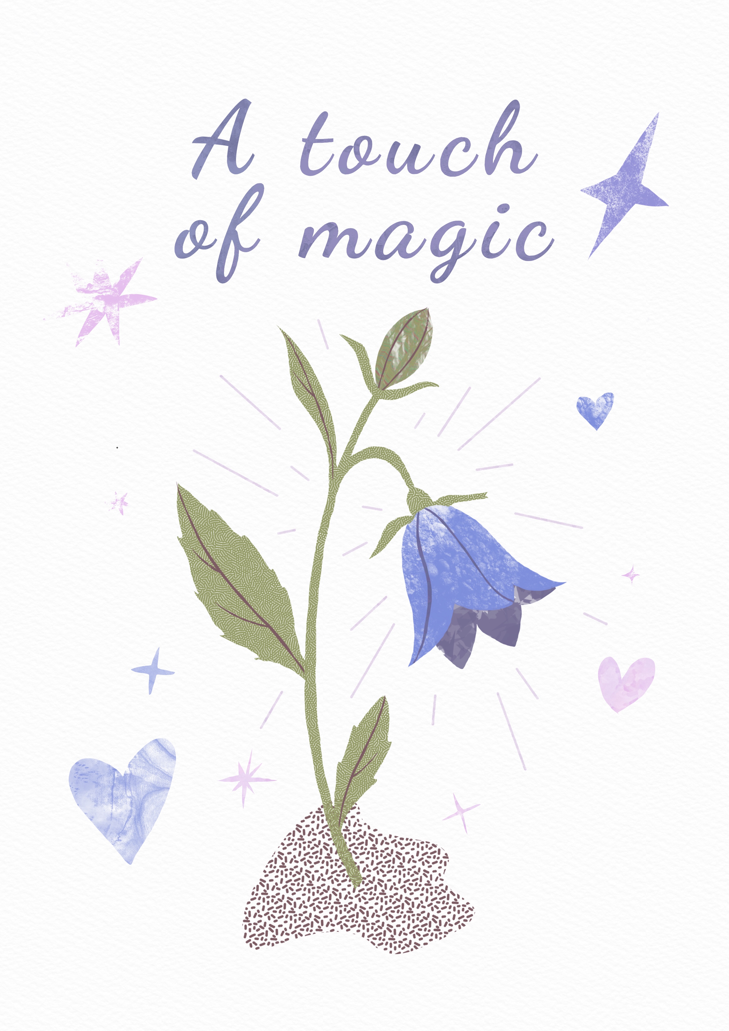Нежная иллюстрация с колокольчиком в коллажном стиле. Идеальна как открытка, принт, постер или обложка для блокнота/ежедневника.