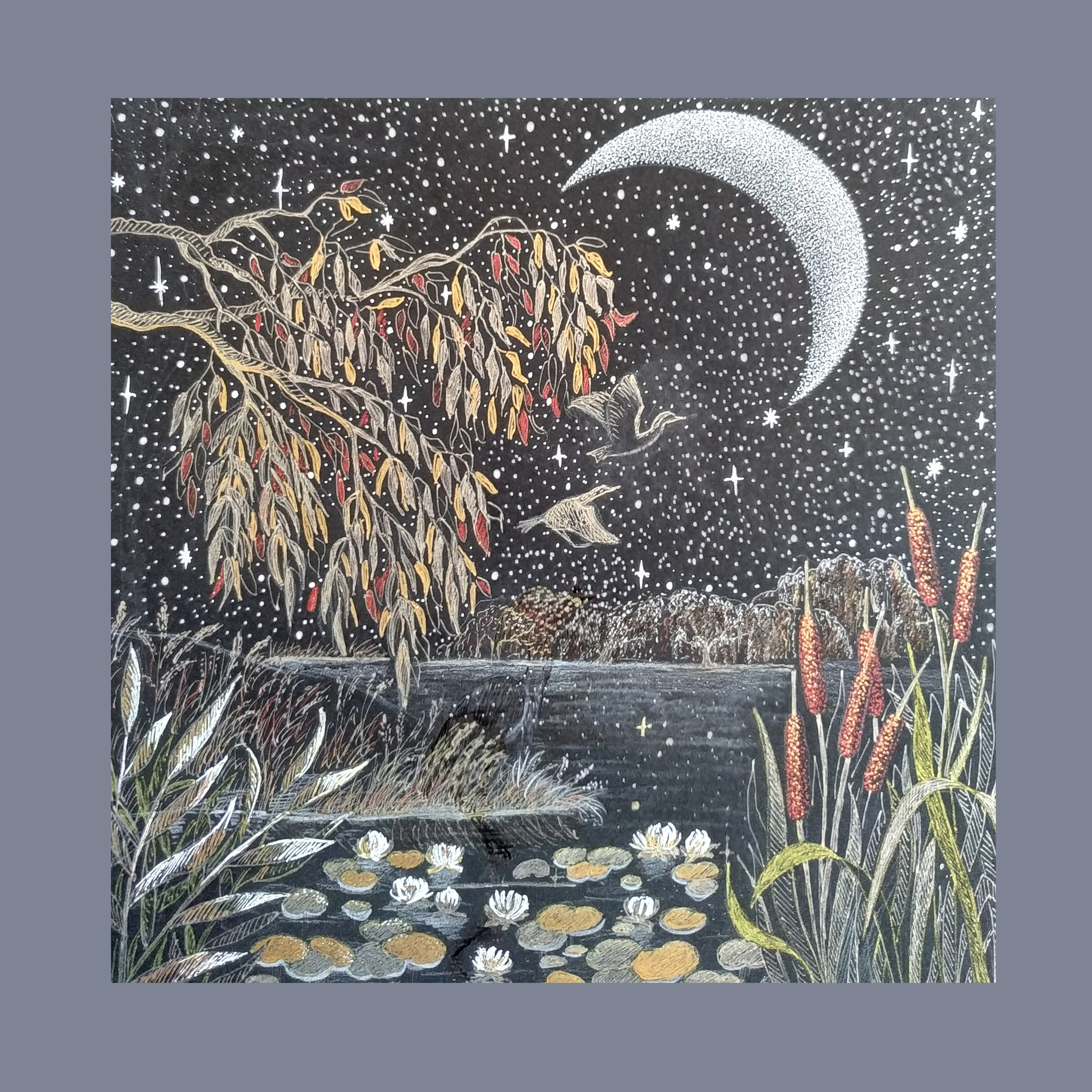 Работа авторская, выполнена линерами и пастельными карандашами от руки. Размер работы 25*25 см