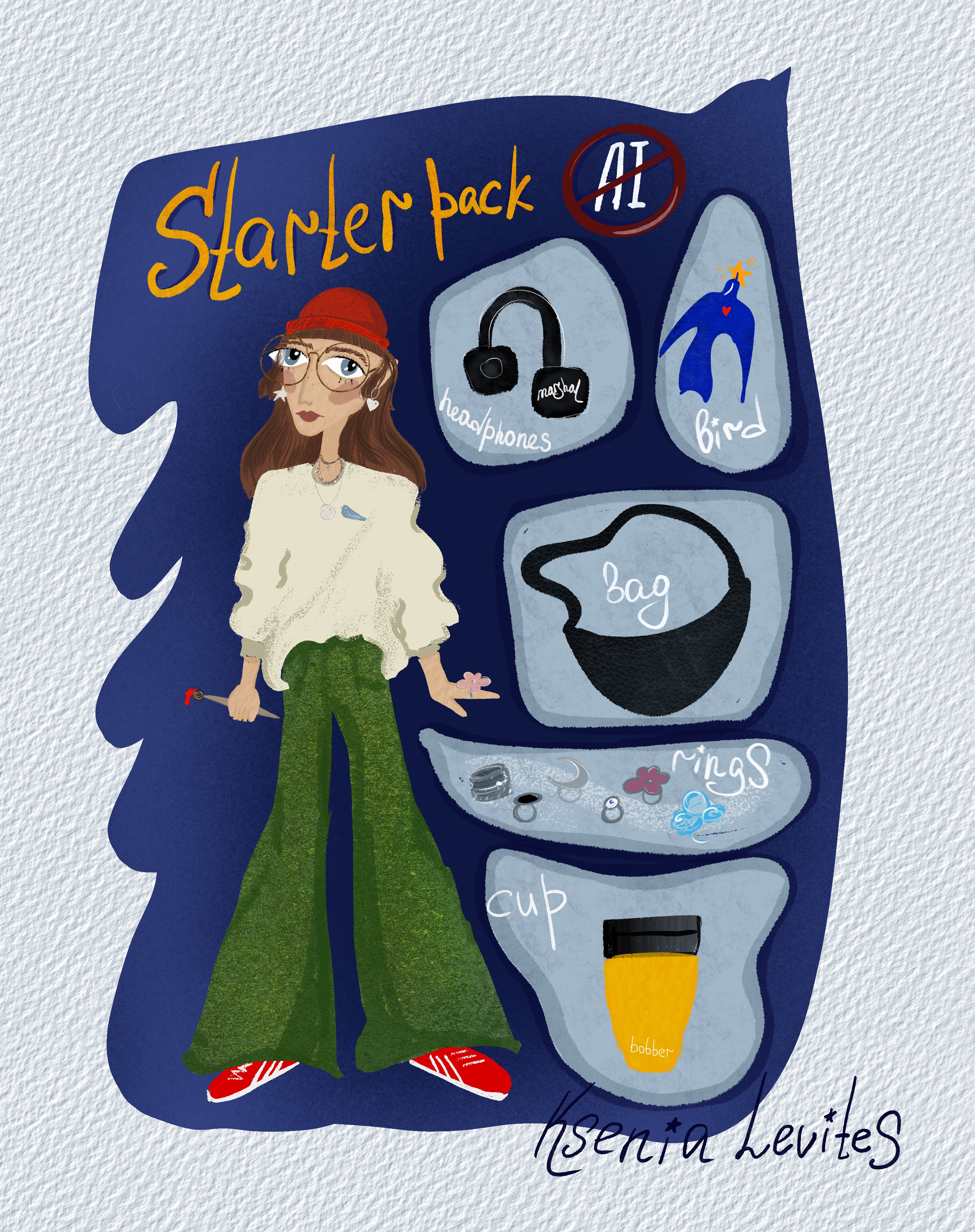 Картинка в рамках челленджа,который запустили французские художники и иллюстраторы в протест генерированным картинкам, сделанным искусственным интеллектом #starterpackNoAI