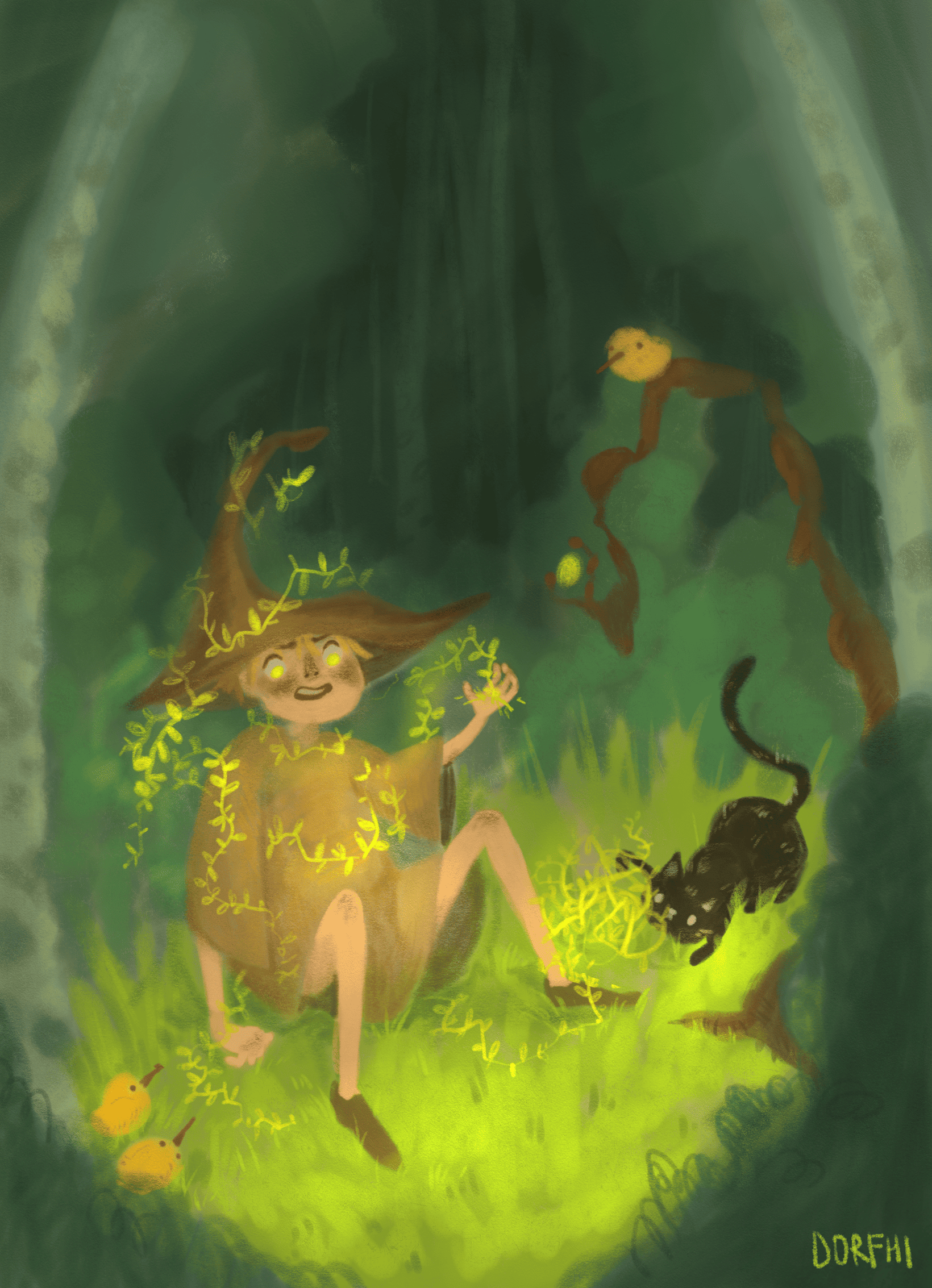 Иллюстрация по случайно выпавшему словосочетанию «Удивленный волшебник», сделана в рамках курса