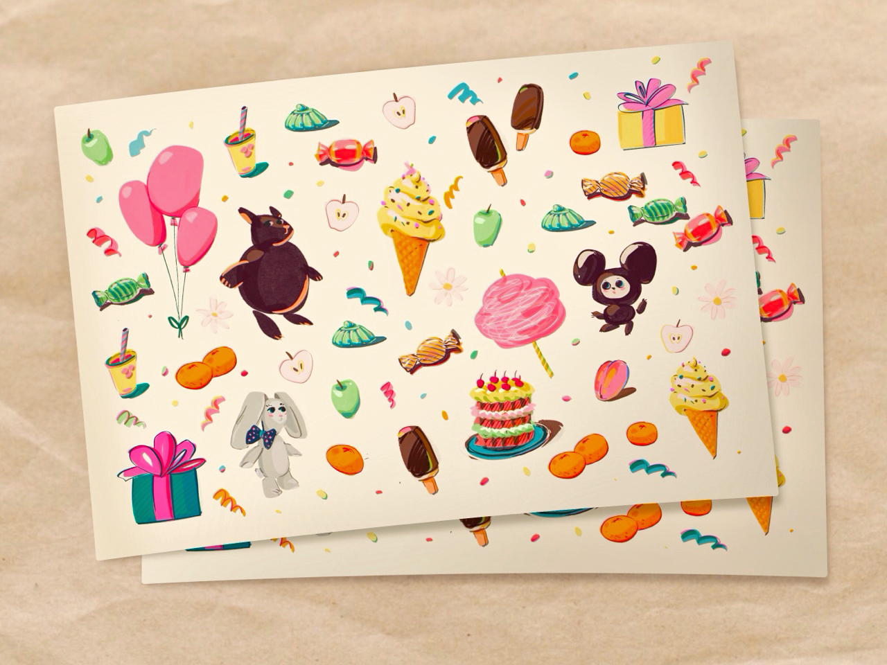 бумажные стикеры праздничное настроение