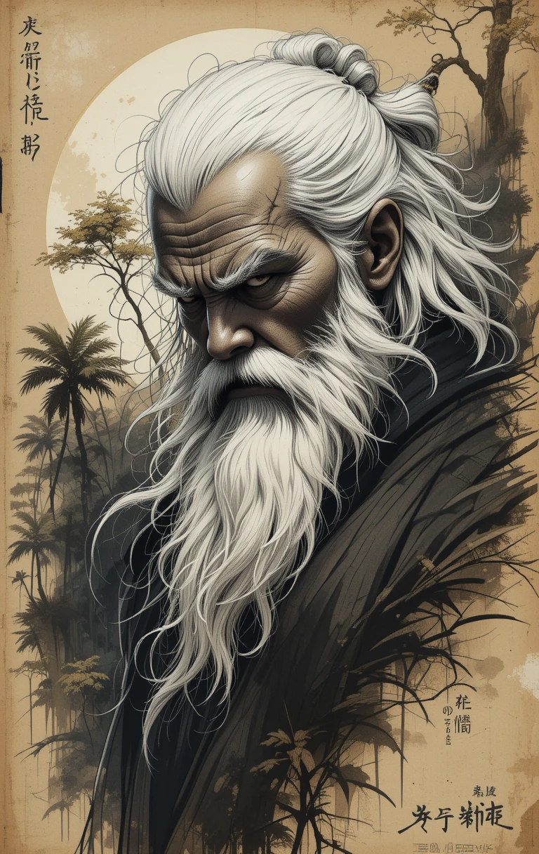 Суровый старый воин-ветеран.