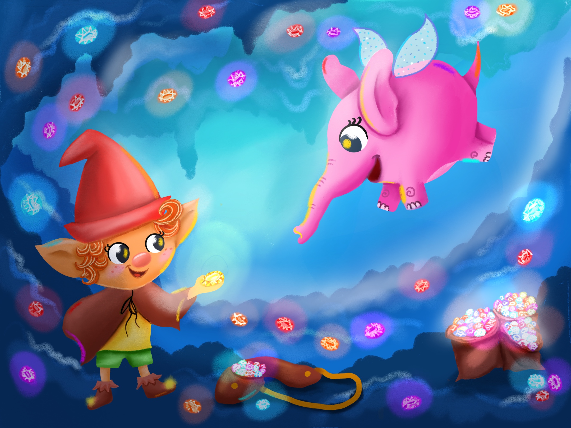 Шлепа и гноми нашли редкий драгоценный камушек. Его сияние похоже на солнышко, но оно совсем не греет, как наше любимое солнышко! История о том, как подземный слоник мечтает увидеть солнышко)