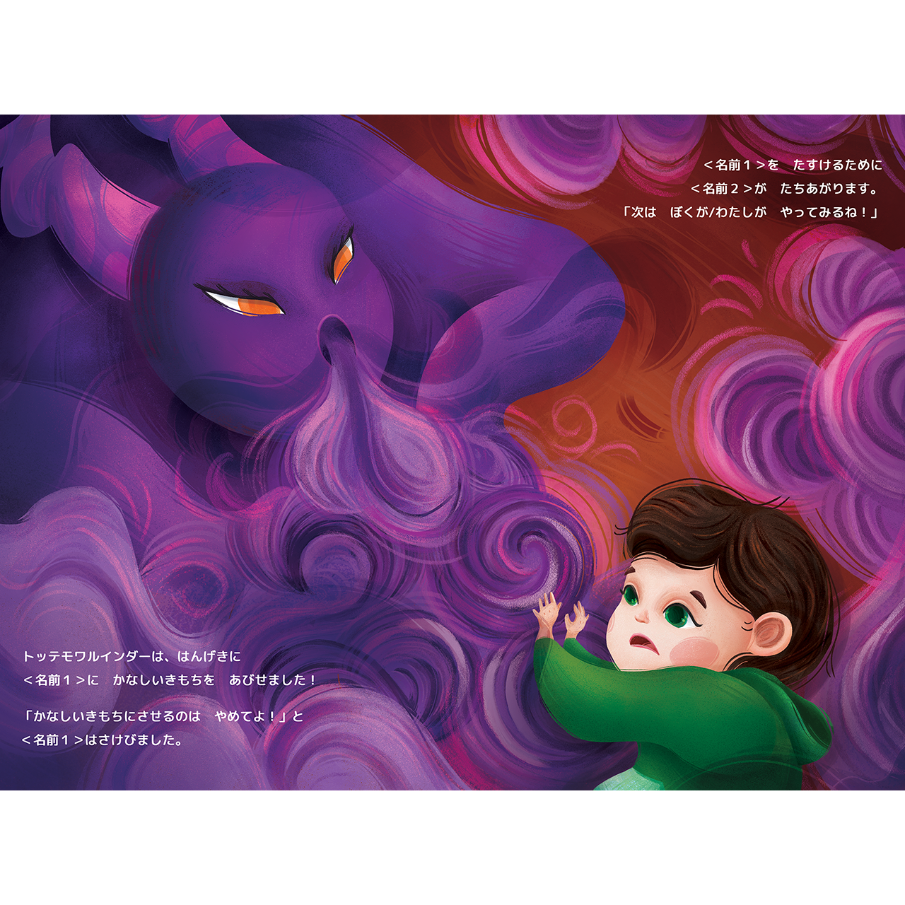 Создание книги для японского издательства. Сложность проекта заключается в том, что книга кастомизируется под детей. Данный проект рассчитан на семью, где больше одного ребенка. Родитель может выбрать цвет кожи, цвет волос, а также выбрать из перечня характерные черты свои детей. От этого меняется вся книга. Поэтому нужно отдельно рисовать фон и отдельно детей в разных вариациях и в разном количестве. Получился сложный, но очень красивый проект.